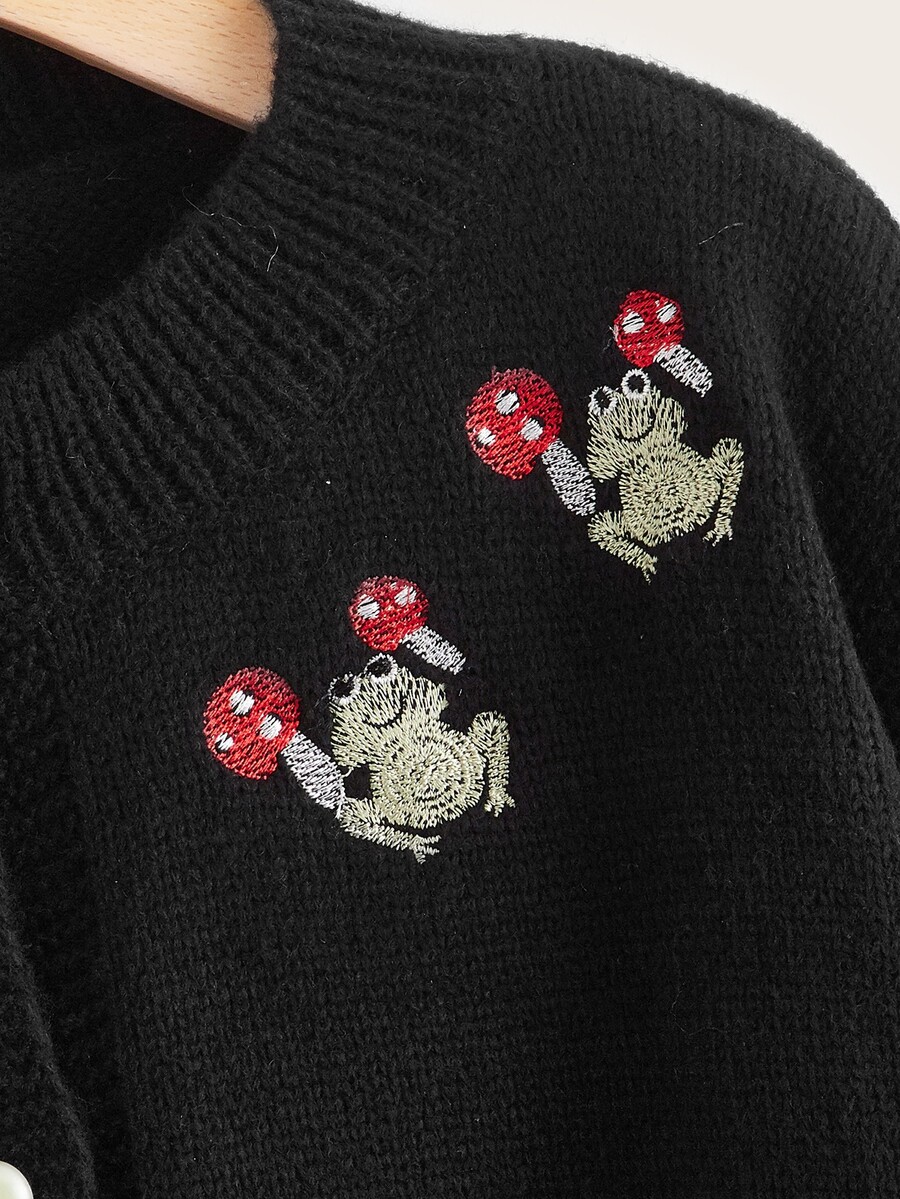 كارديجان بتطريز الفطر والضفدع أزرار أمامية
