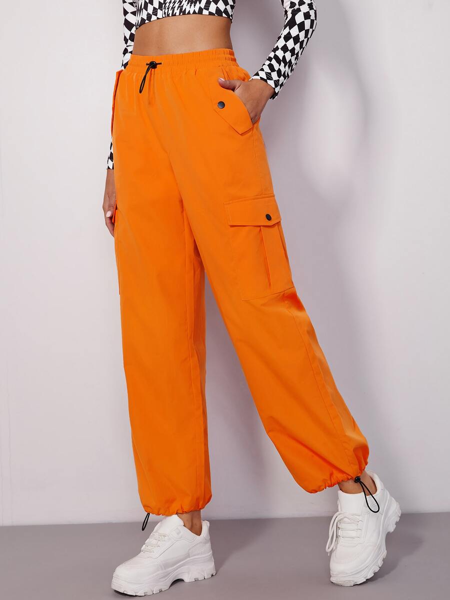 بنطلون كاجو بجيوب بلون النيون البرتقالي