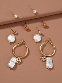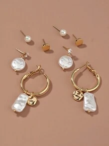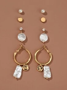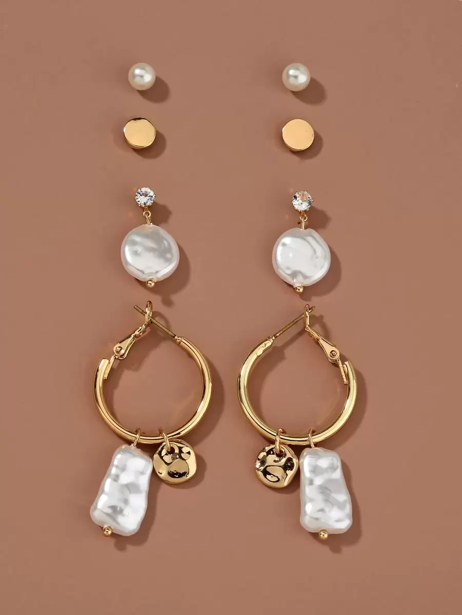 Nooxian اقراط متدلي باللؤلؤ الصناعي 4 ازواج