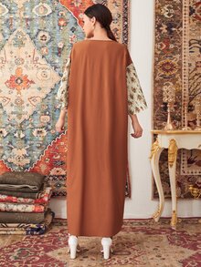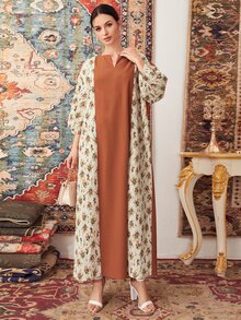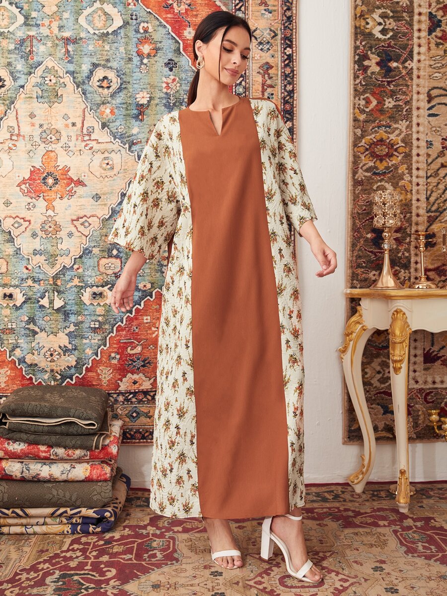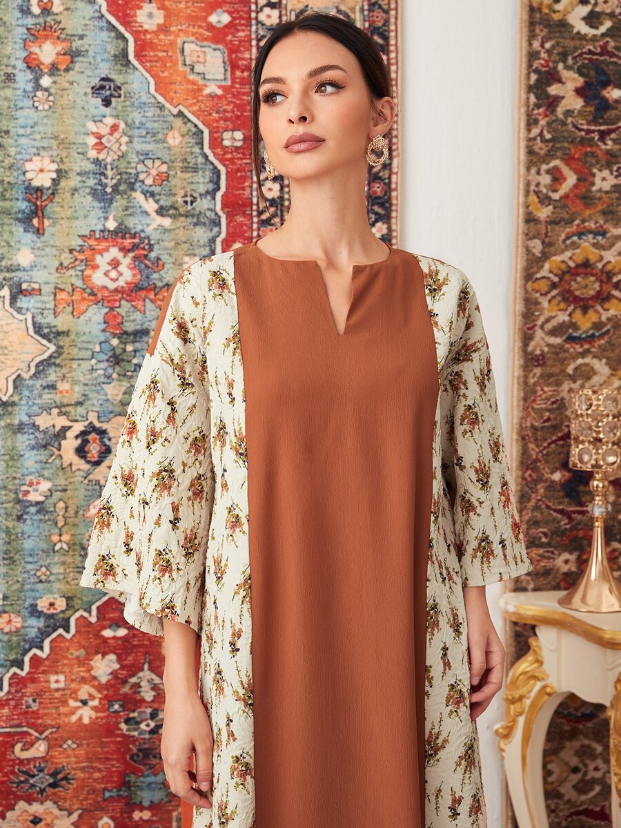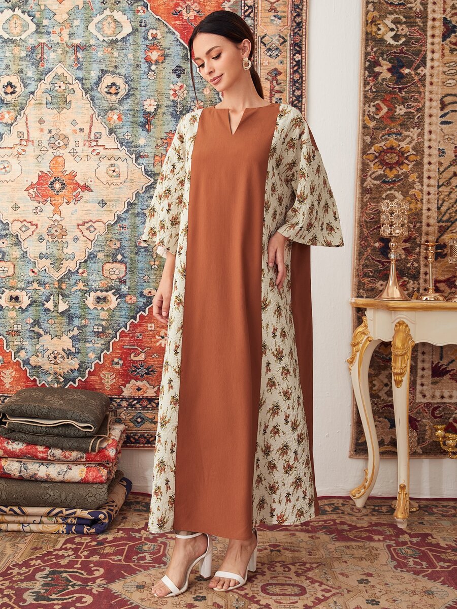 فستان تينت بالوان متجانسة بطباعة زهر بياقة مسنن