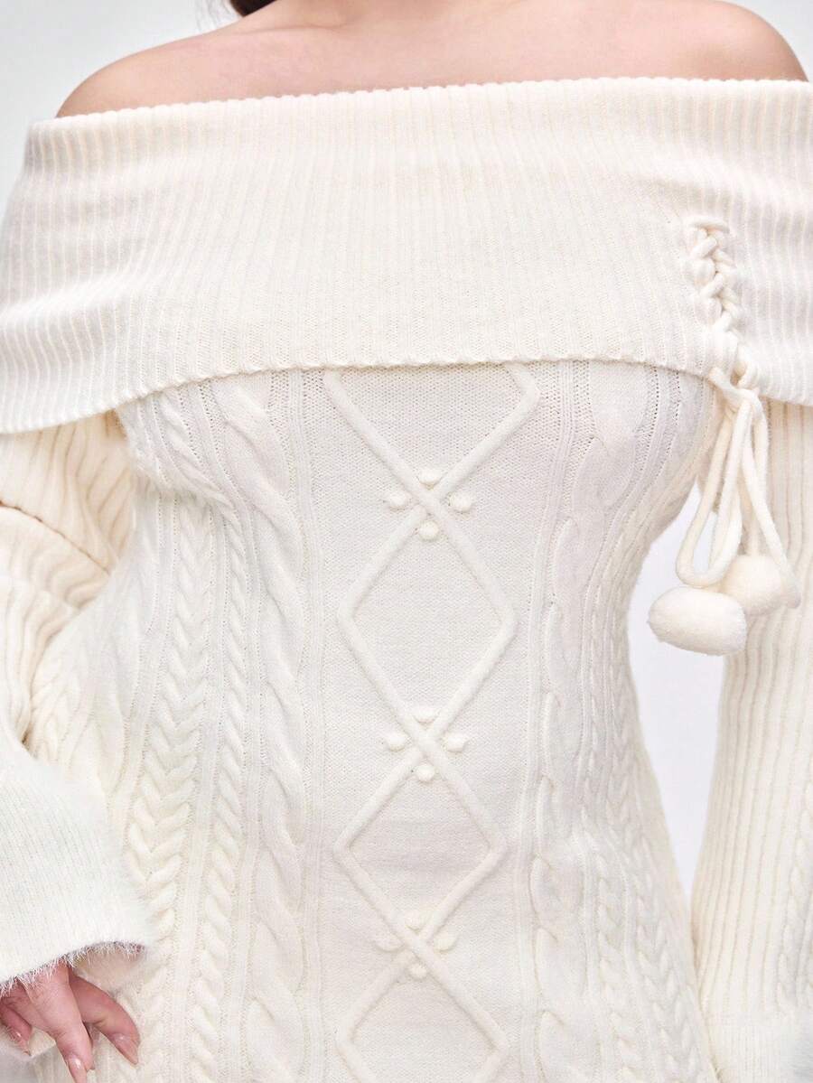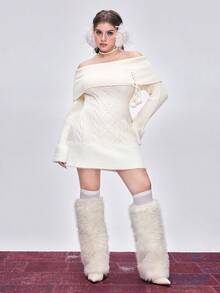 Kawaii فستان سهرة كنزة مزين بكرة الفرو على الكتف مع رقعة مبطنة مخملية مقاس كبير للنساء، مناسب لحفلات رأس السنة وعيد الحب