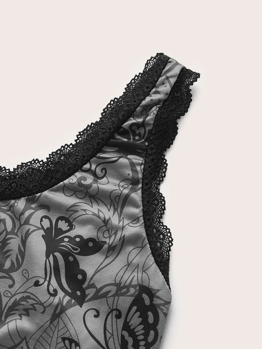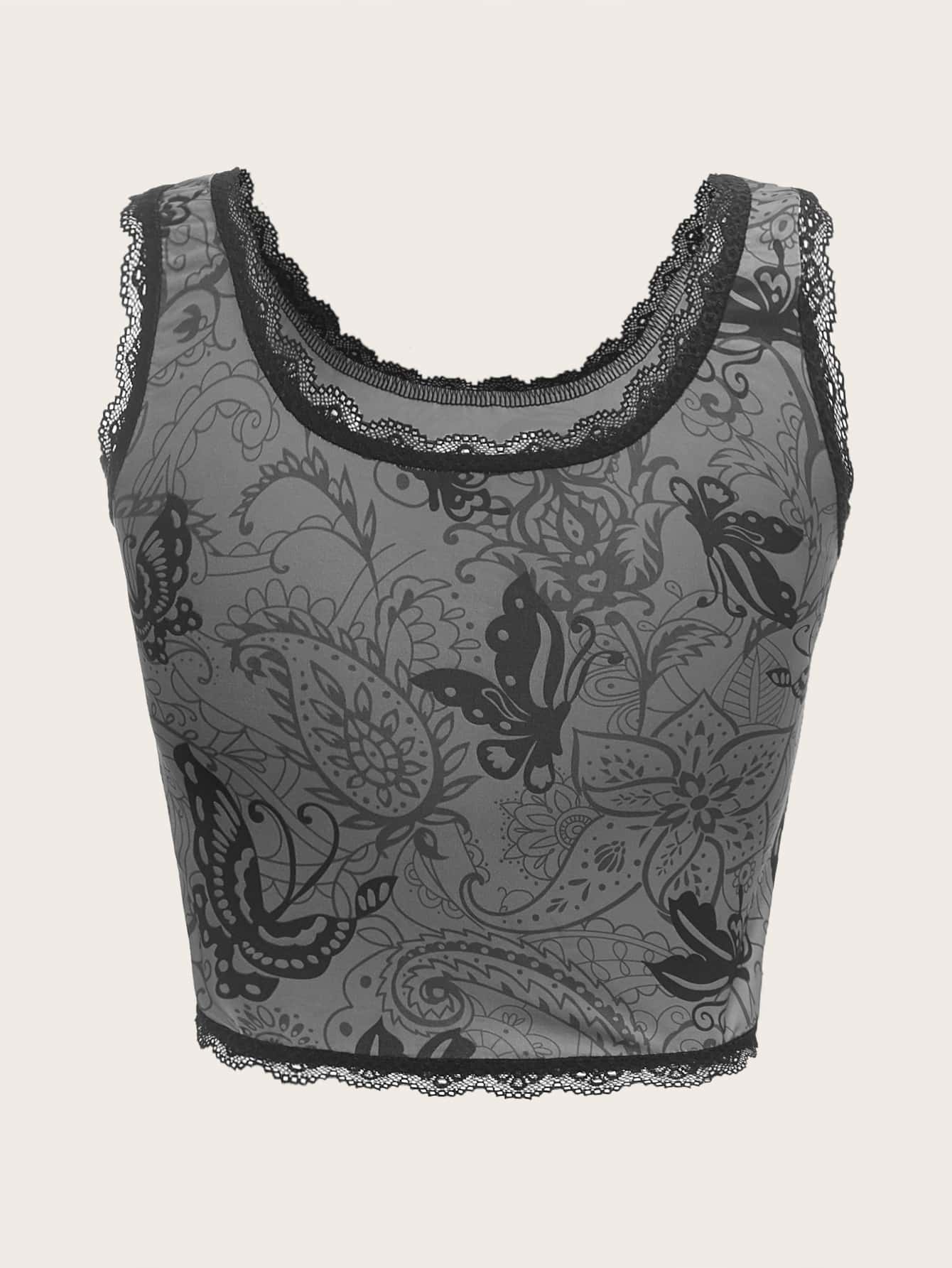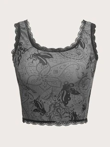 لباس علوي تانك طباعة بيزلي مقلم دانتيل