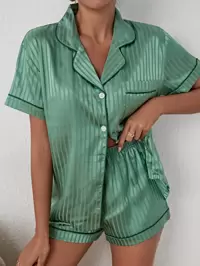 طقم بيجامة من القطن الساتان مع أزرار وخطوط ملونة