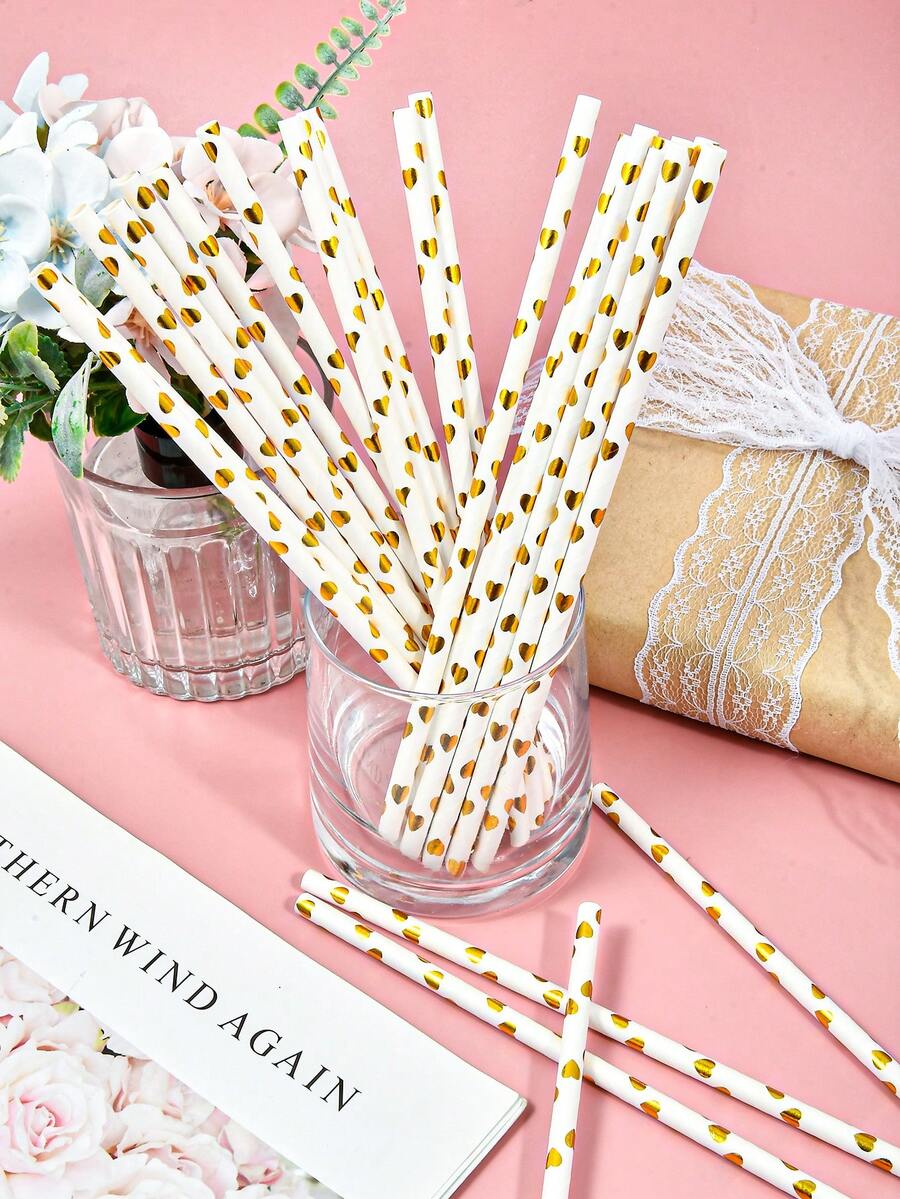 أنابيب الحزب، أنابيب شرب قابلة للتصرف باللون الذهبي، 25 قطعة/عشوائي الحزمة