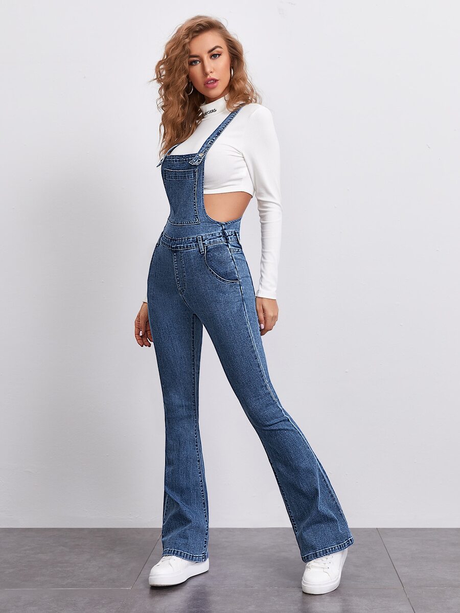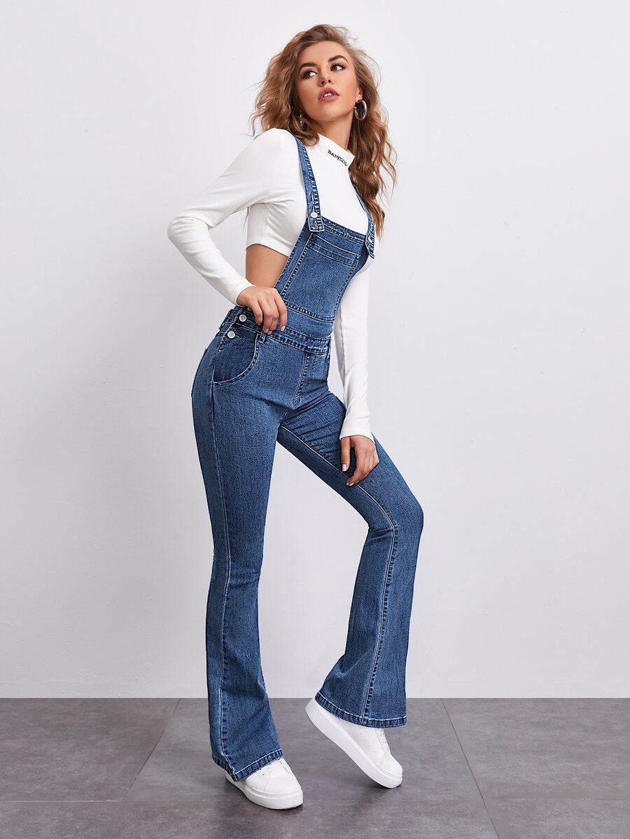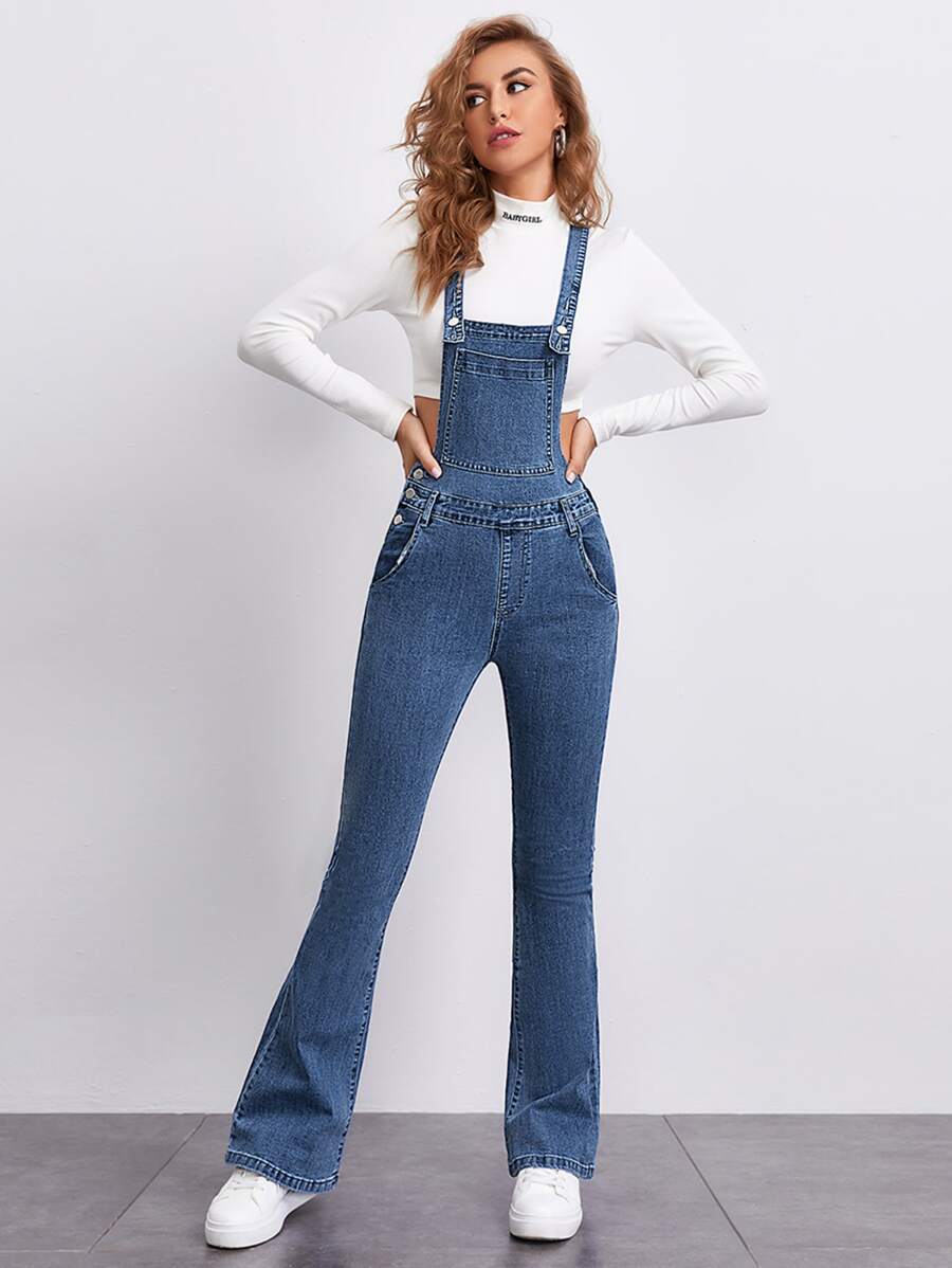 وزرة الدنيم التصحيح الجيب مضيئة الساق