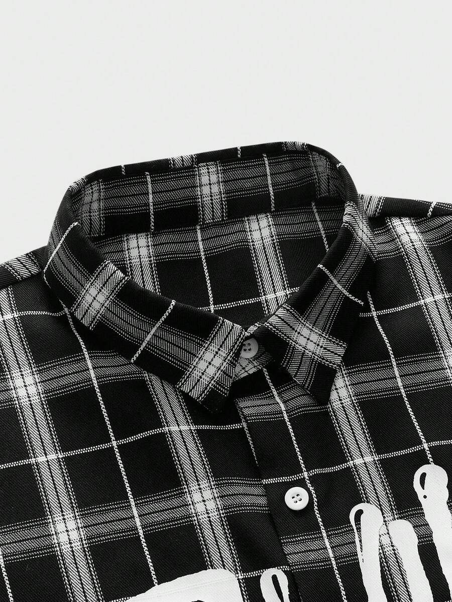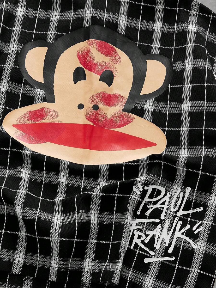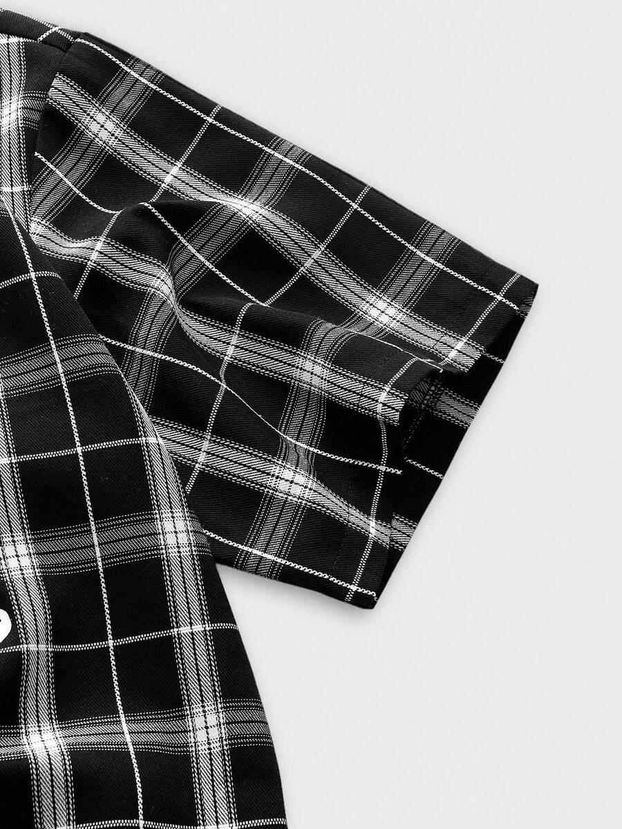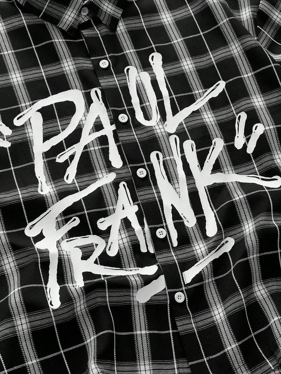 Paul Frank X ROMWE قميص صيفي قصير الأكمام ذو أزرار أمامية مزين برسم خطي وبنقشة منقوشة للرجال
