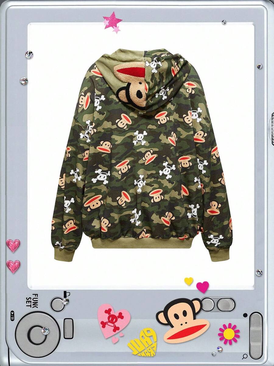 Paul Frank X ROMWE بلوزة رياضية فضفاضة مطبوعة بالكامو من ثقافة فرعية Kpop وY2K وبادي وشارع