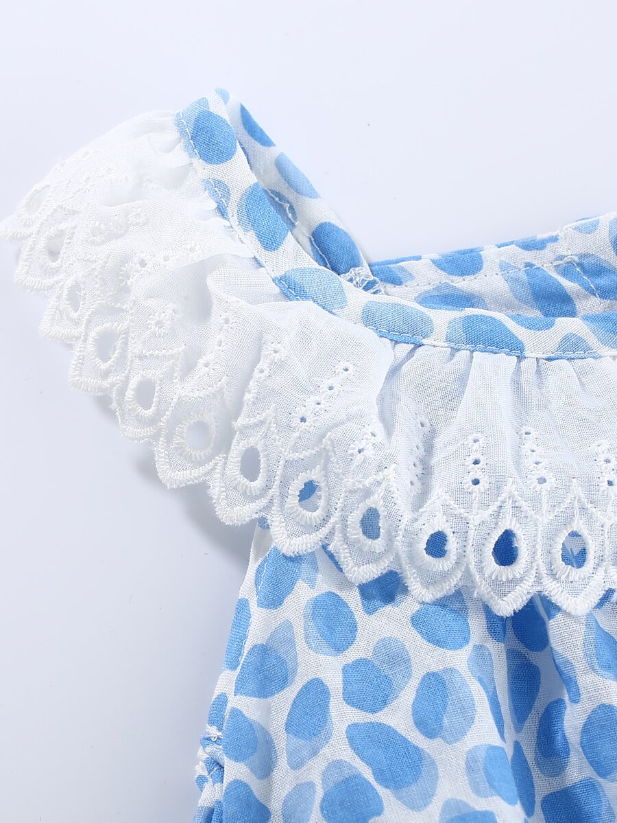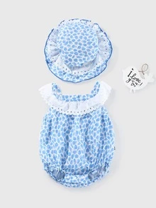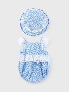 Peninsula Baby بدسويت مقلم بكشكش وبطباعة شامل مع قبعة للبنات الاطفال