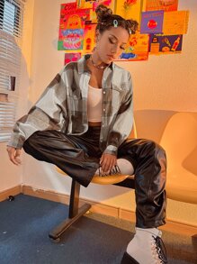 قميص منخفض الكتف بأزرار للنهاية مربع النقش