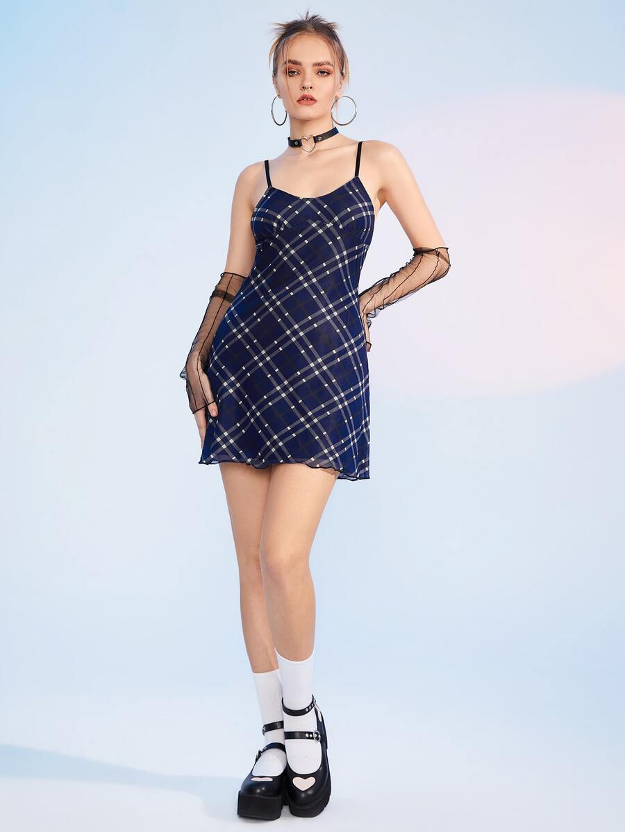 فستان كامي مربعات ملونة بدون باكمام منفصلة
