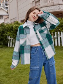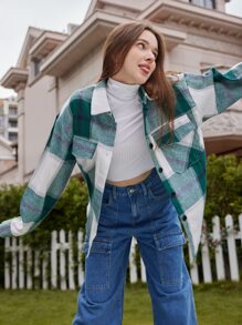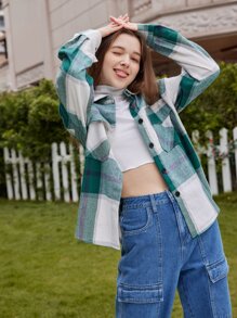 قميص مربعات ملونة جيب قلاب