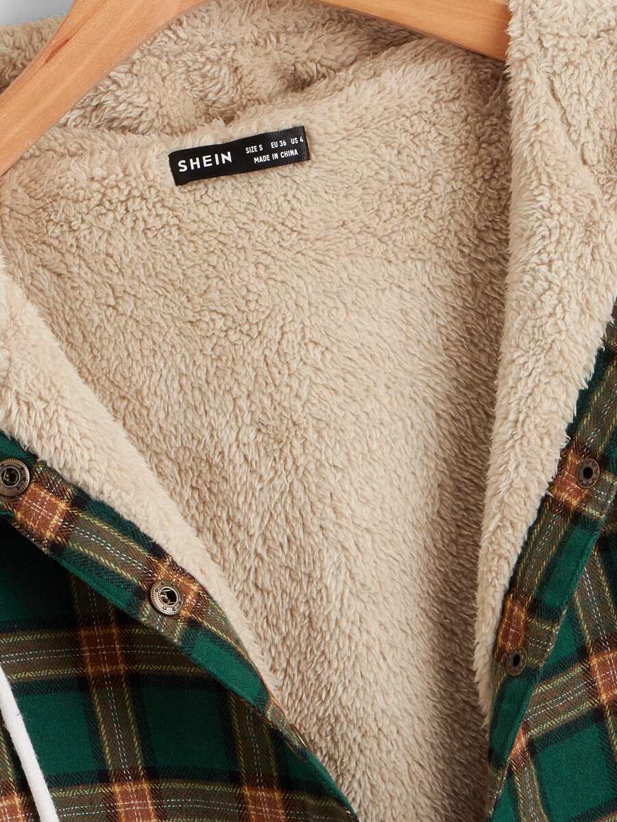معطف مبطن بطبعة المربعات مع أزرار معشقة وسحاب للرأس مناسب للخريف والشتاء