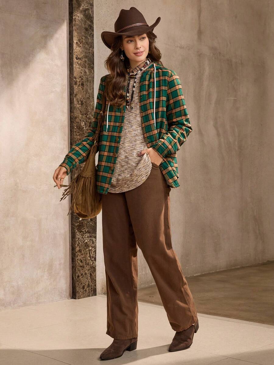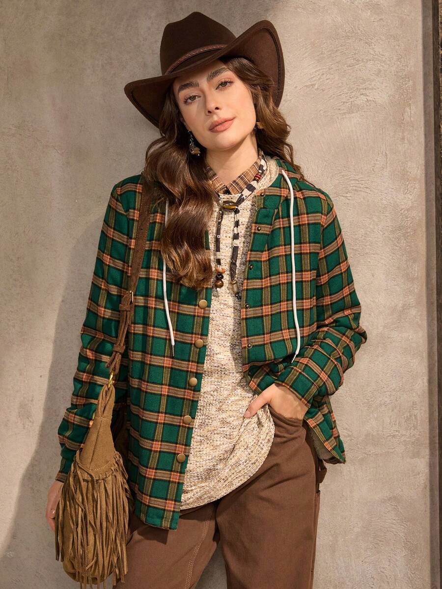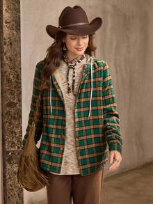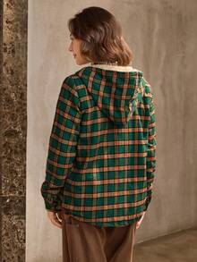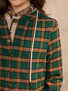 معطف مبطن بطبعة المربعات مع أزرار معشقة وسحاب للرأس مناسب للخريف والشتاء