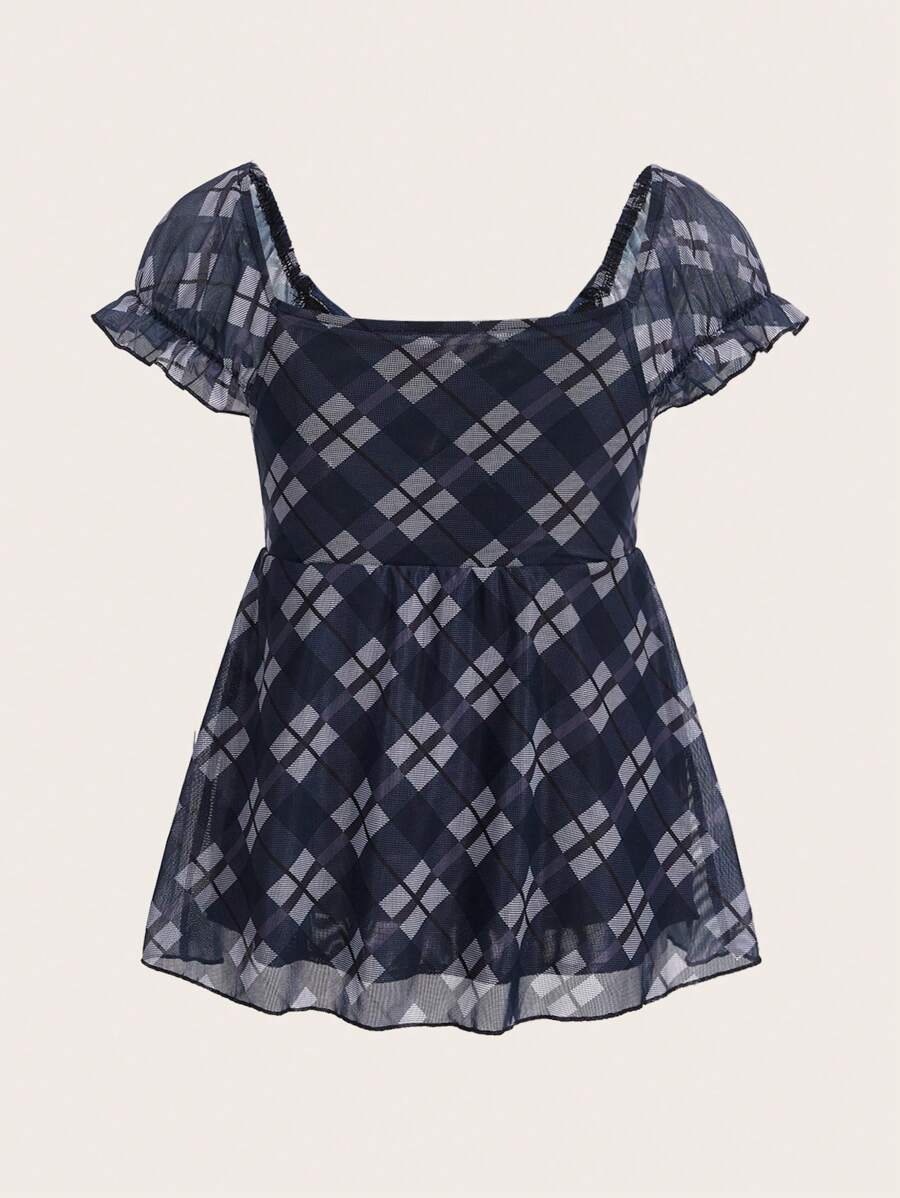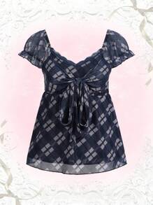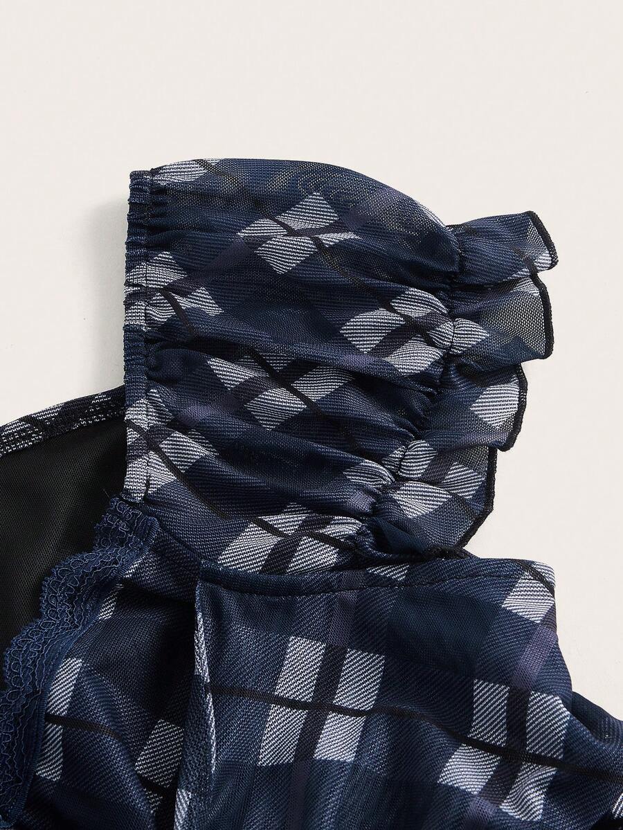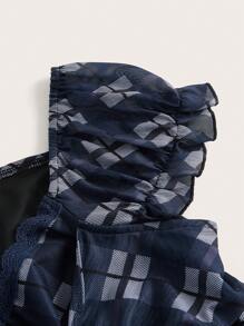 لباس علوي طباعة مربع النقش ربطة امامية شبكة