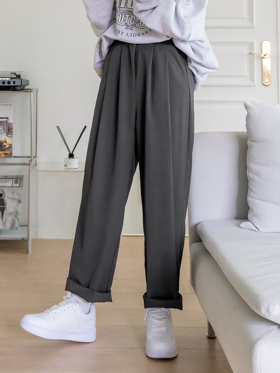 بنطلون نسائي ذو تفاصيل مطوية ساق مستقيمة