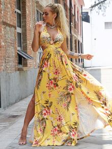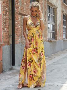 Joyfunear فستان زهري ذو فتحة على الظهر في الخلف وياقة غاطسة