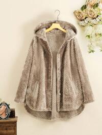 معطف مقلم زغبي أزرار أمامية مقاس كبير
