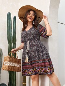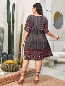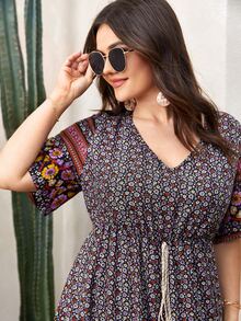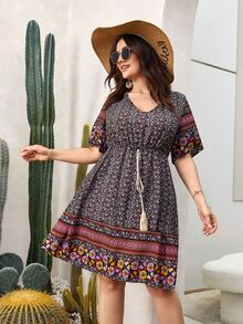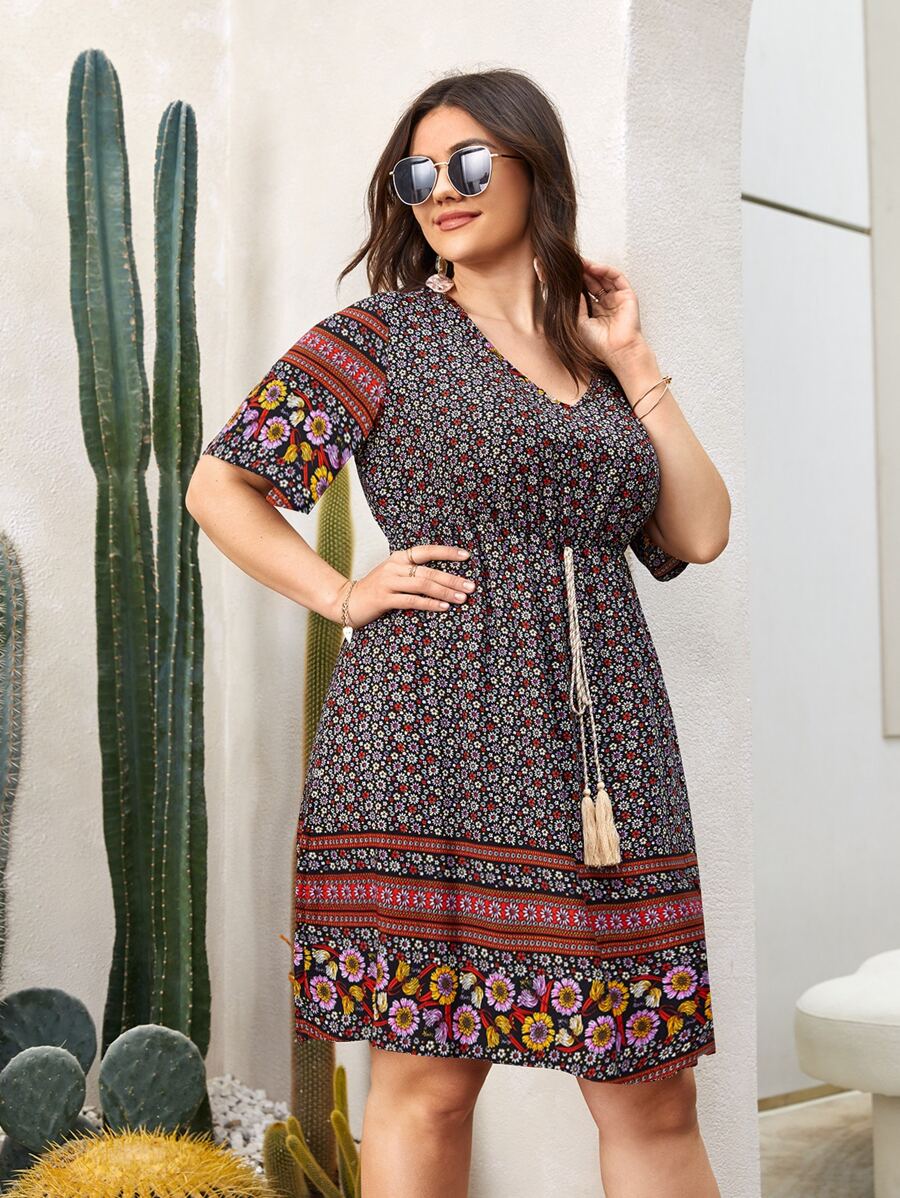 فساتين مقاسات كبيرة رباط الظهر منقط بالألوان بوهو