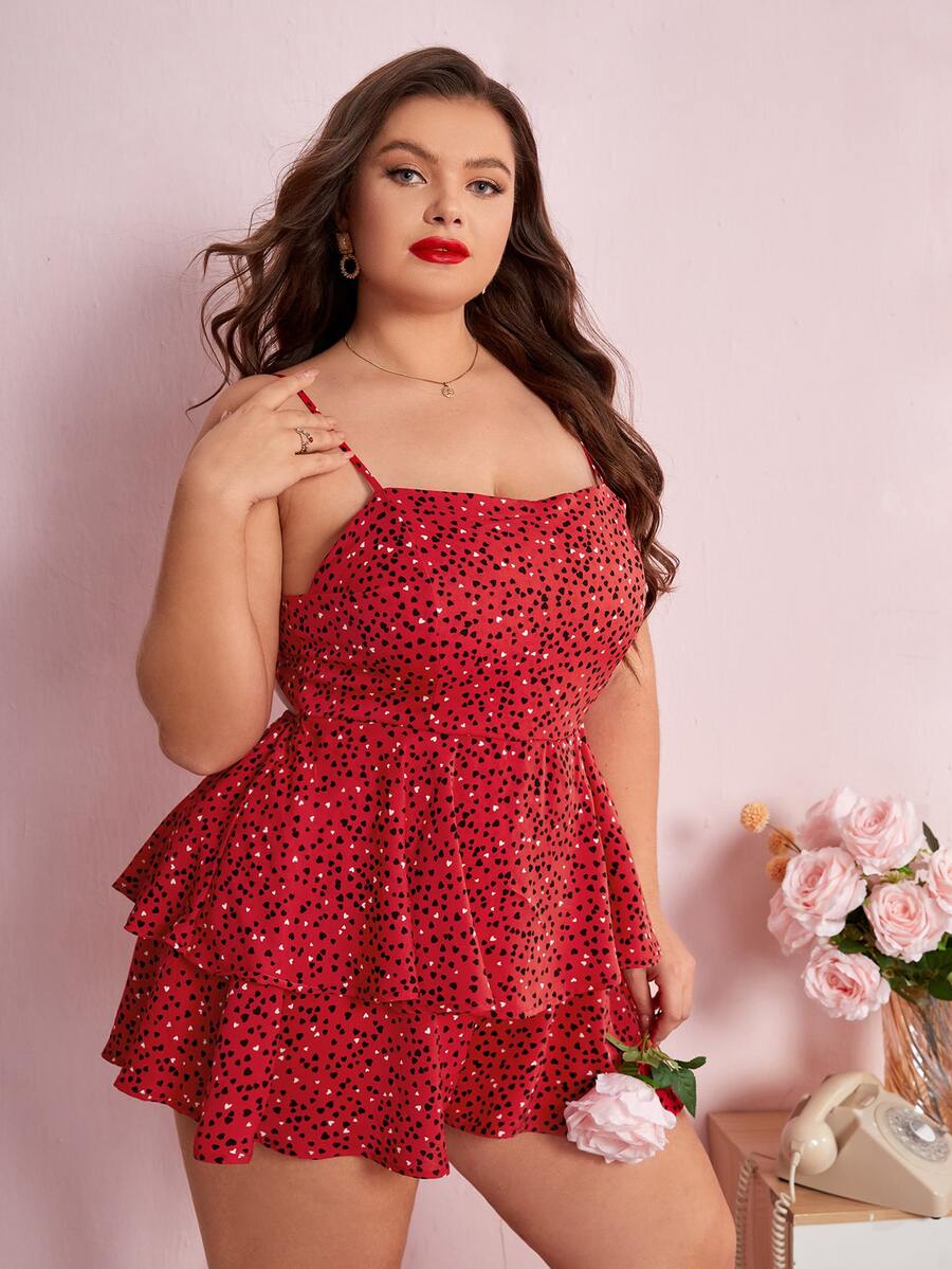 مقاس كبير رومبير بطباعة قلب شامل حافة طبقات