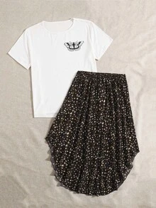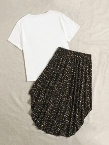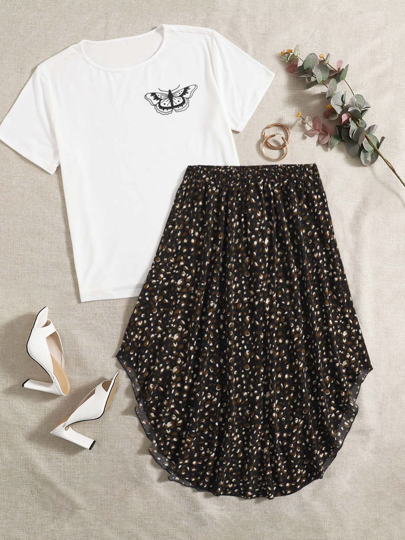 تنورة غير متماثل وبطباعة شامل مقاس كبير