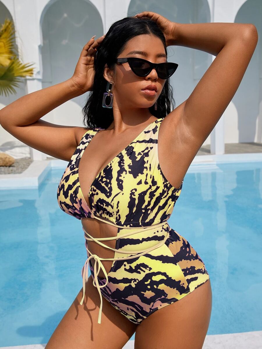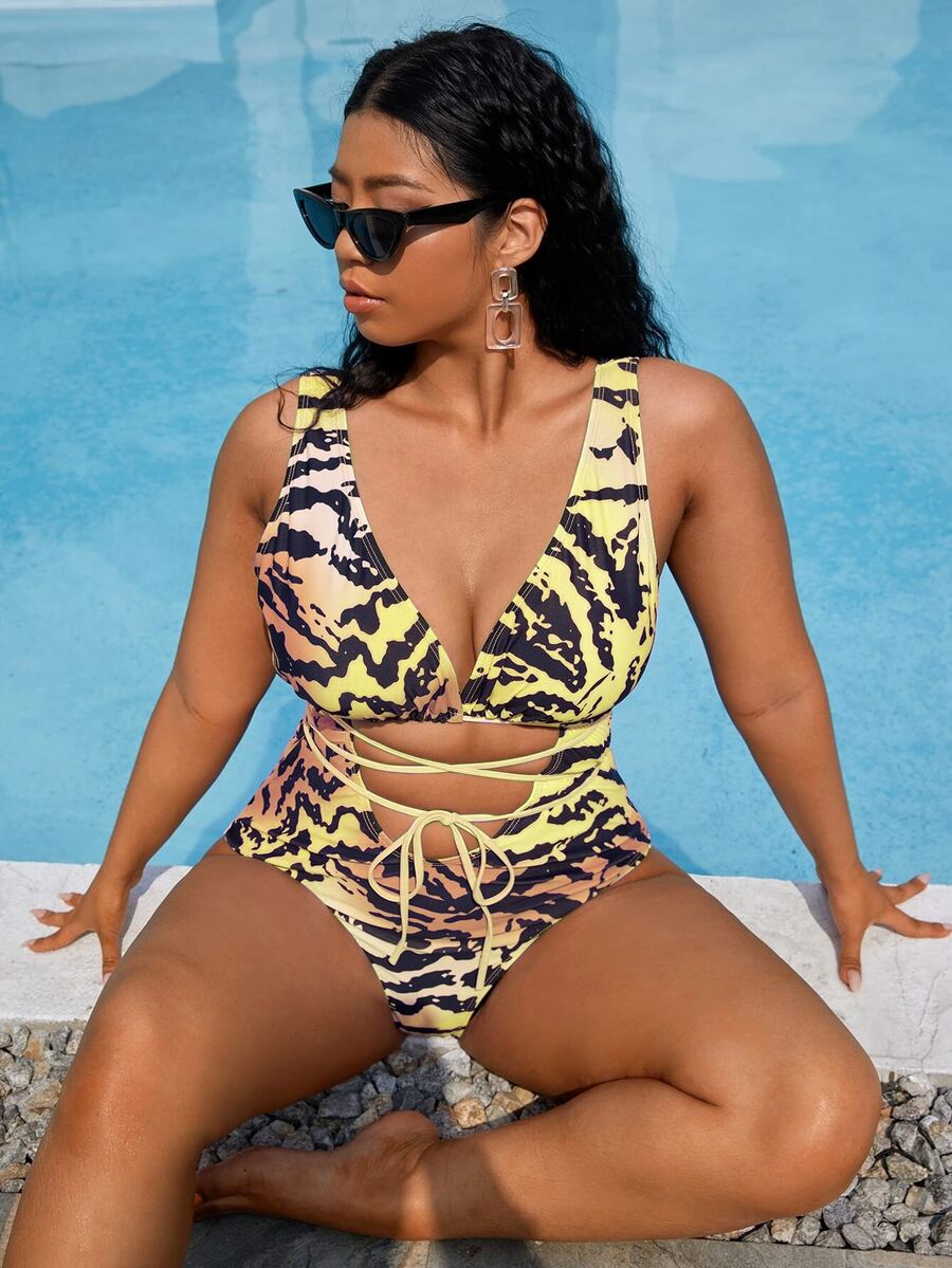 ملابس سباحة قطعة واحدة مقصوص بطباعة شامل مقاس كبير