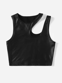 مقاس كبير لباس علوي تانك قصير ياقة غير متماثل