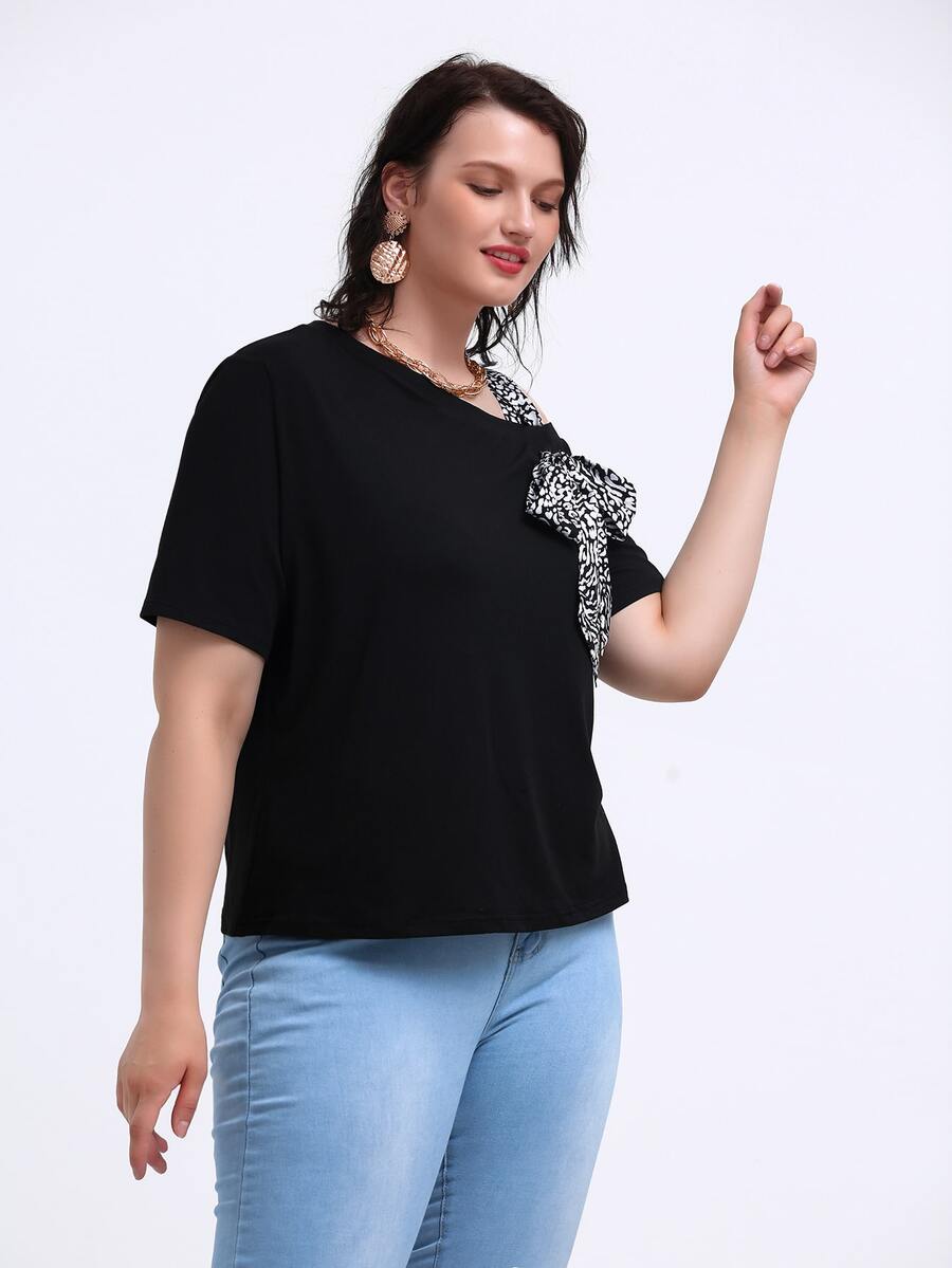 تي شيرت بربطة امامي بياقة غير متماثل مقاس كبير