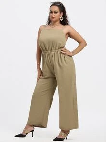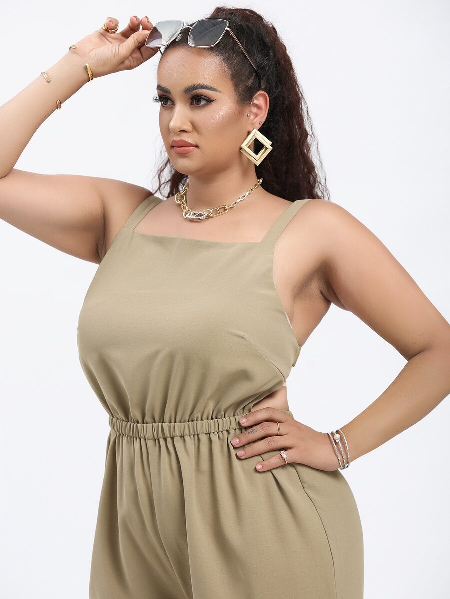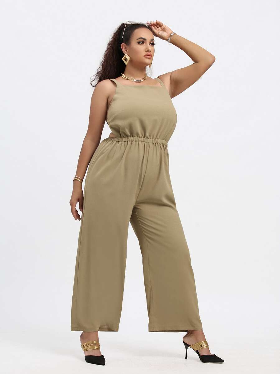 جمبسوت مقاسات كبيرة عارية الذراعين الصاف كاجوال