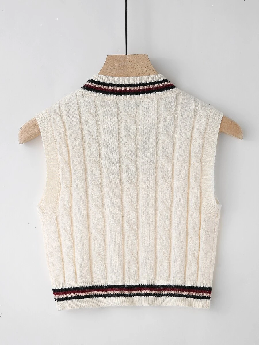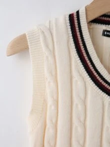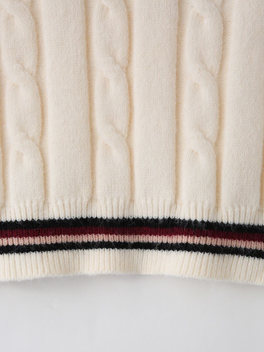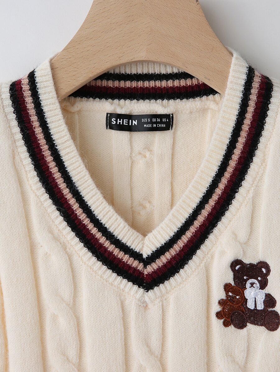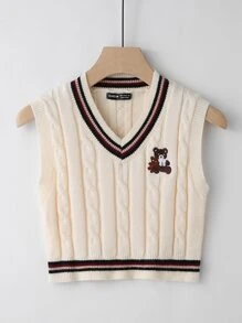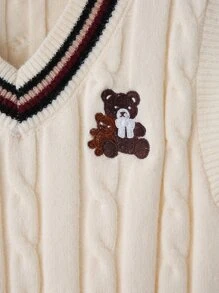 صديري كريكيت محبوك كابل بنمط مخطط مطرز دب مقاس كبير