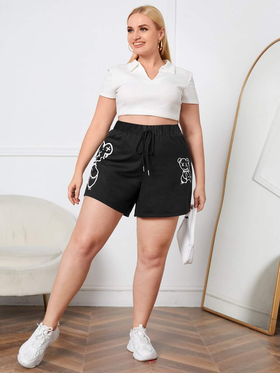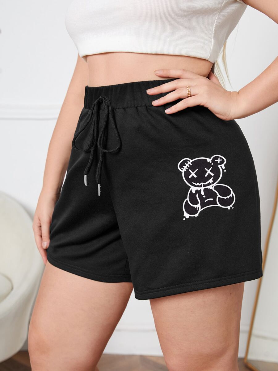 مقاس كبير بنطلون قصير طباعة بالدب معقود من الأمام