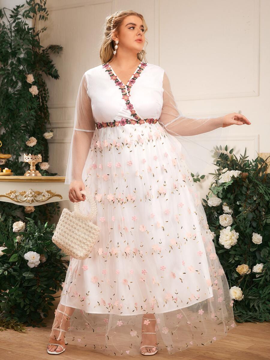 فساتين مقاسات كبيرة تصميم أبليكوي التطريز شفاف لف او غلاف او بطانية رسم الزهر رومانسي