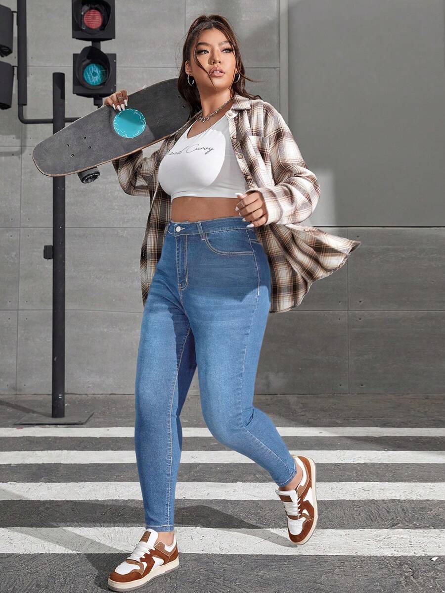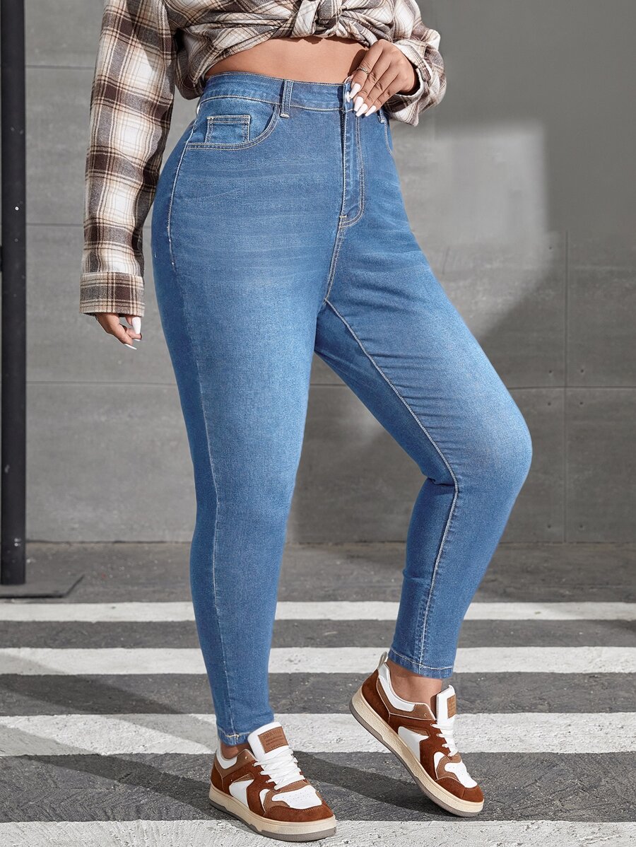بنطلون جينز نحيل باهت اللون مقاس كبير
