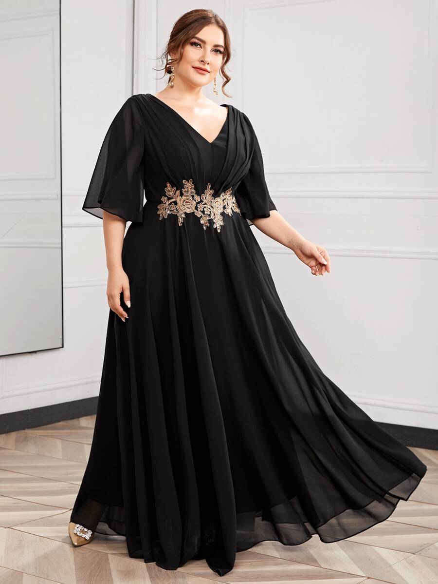 فستان حفلة مكسي منمق بأكمام فراشة مقاس كبير