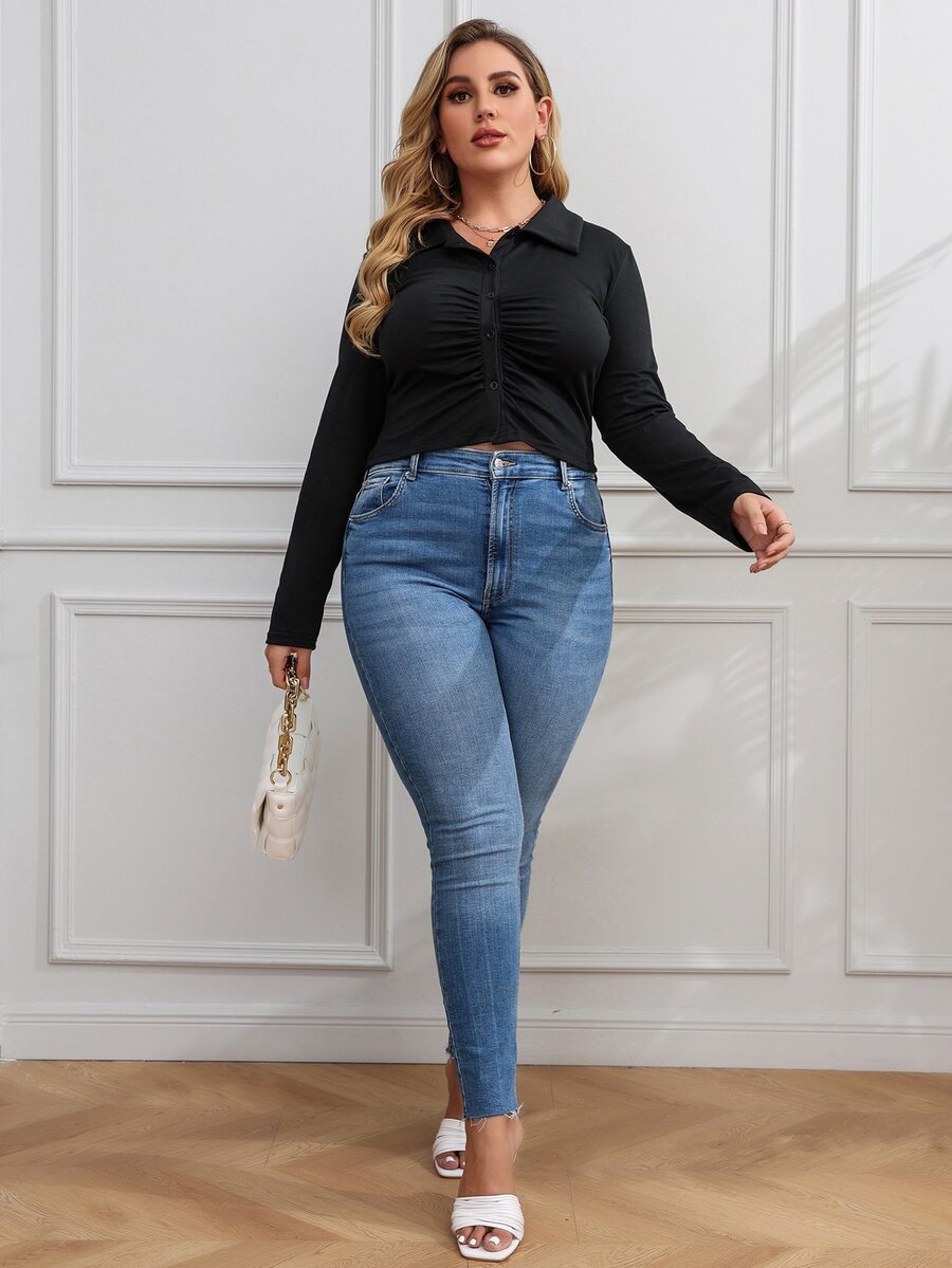 البسة علوية نسائية حجم كبير الثنية بازرارأمامية الصاف كاجوال