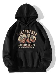 هودي مبطن حراري برباط بجيب الكنغر بجرافيك شعار وسيارة مقاس كبير