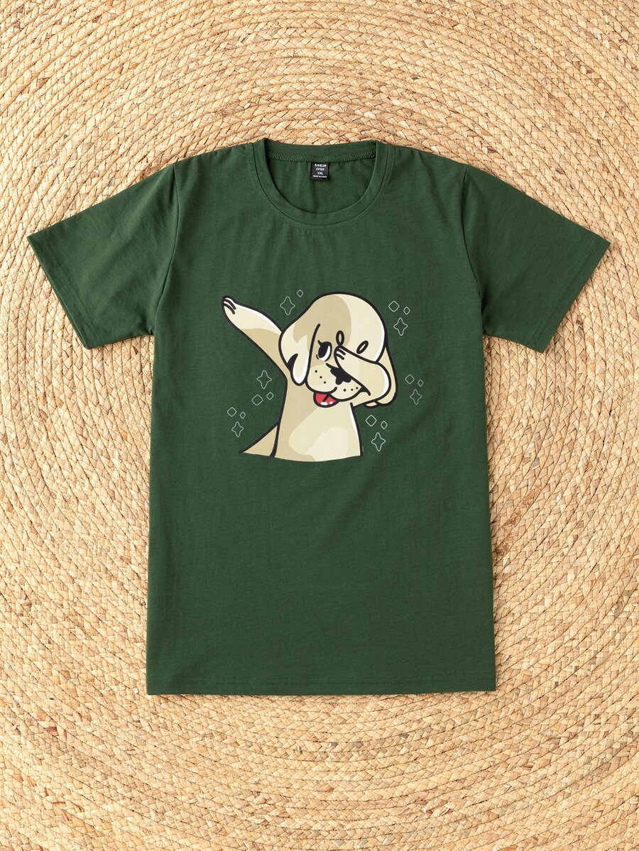 تي شيرت بطباعة كلب كارتون مقاس كبير