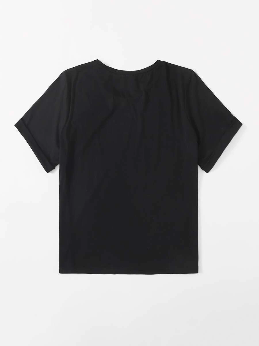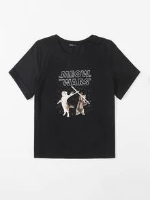 تي شيرت بجرافيك شعار وقط مقاس كبير