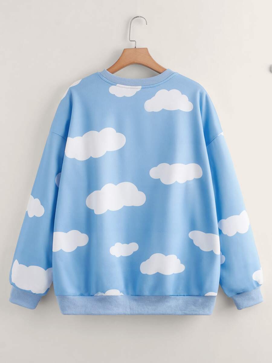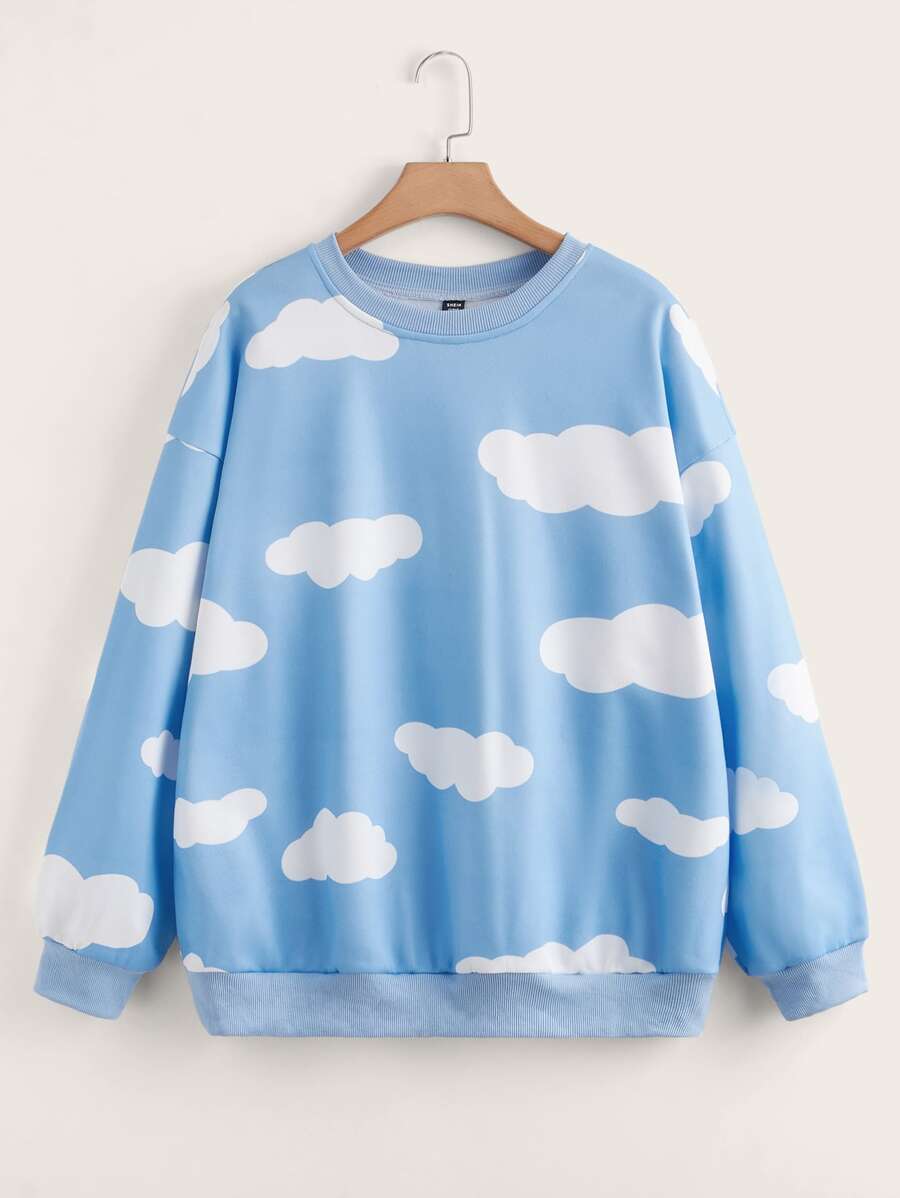 قميص ثقيل حراري بطباعة سحابة مقاس كبير