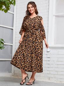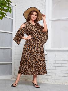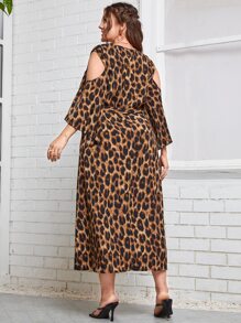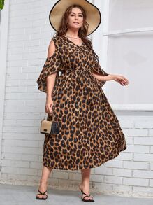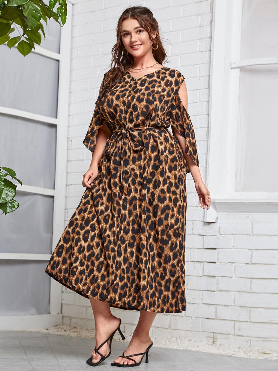 فستان بطباعة الفهد ومكشوف الاكتاف مقاس كبير