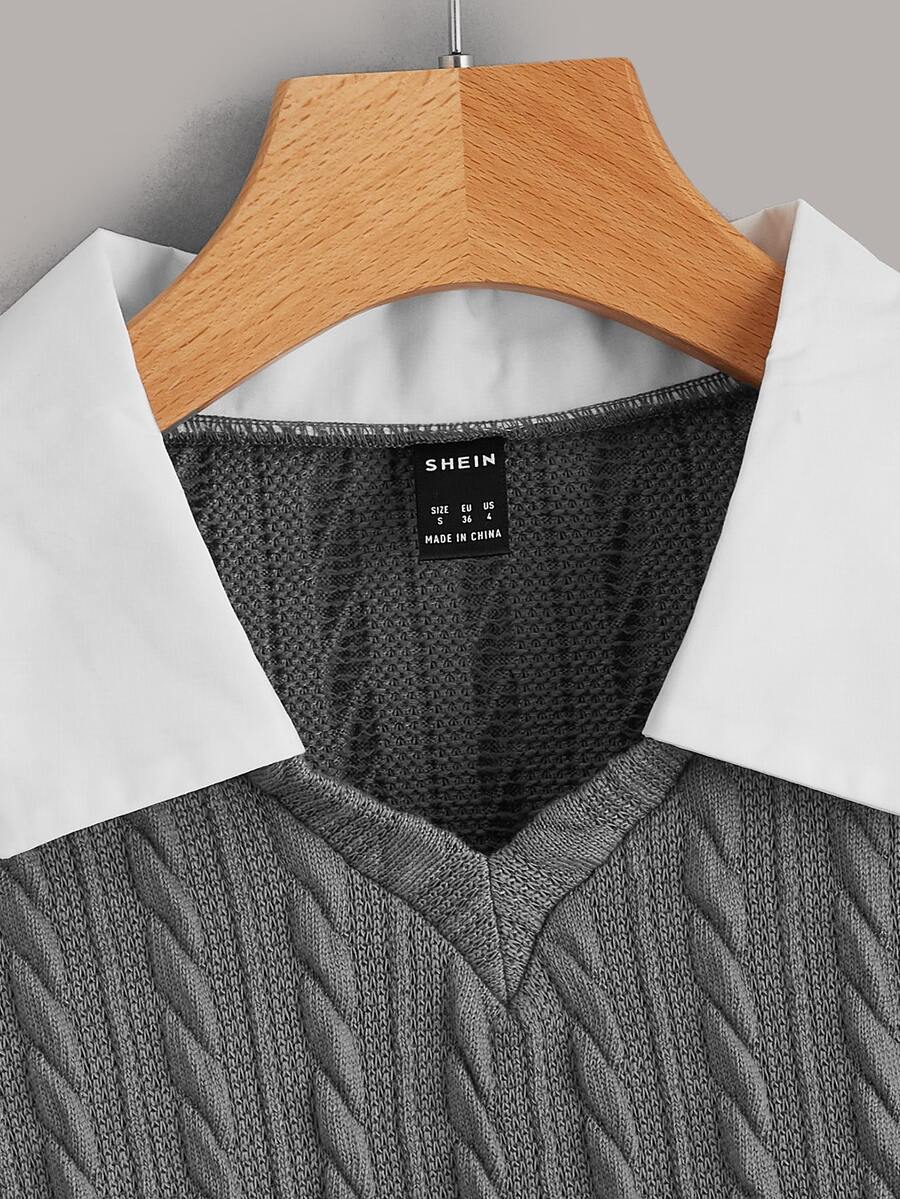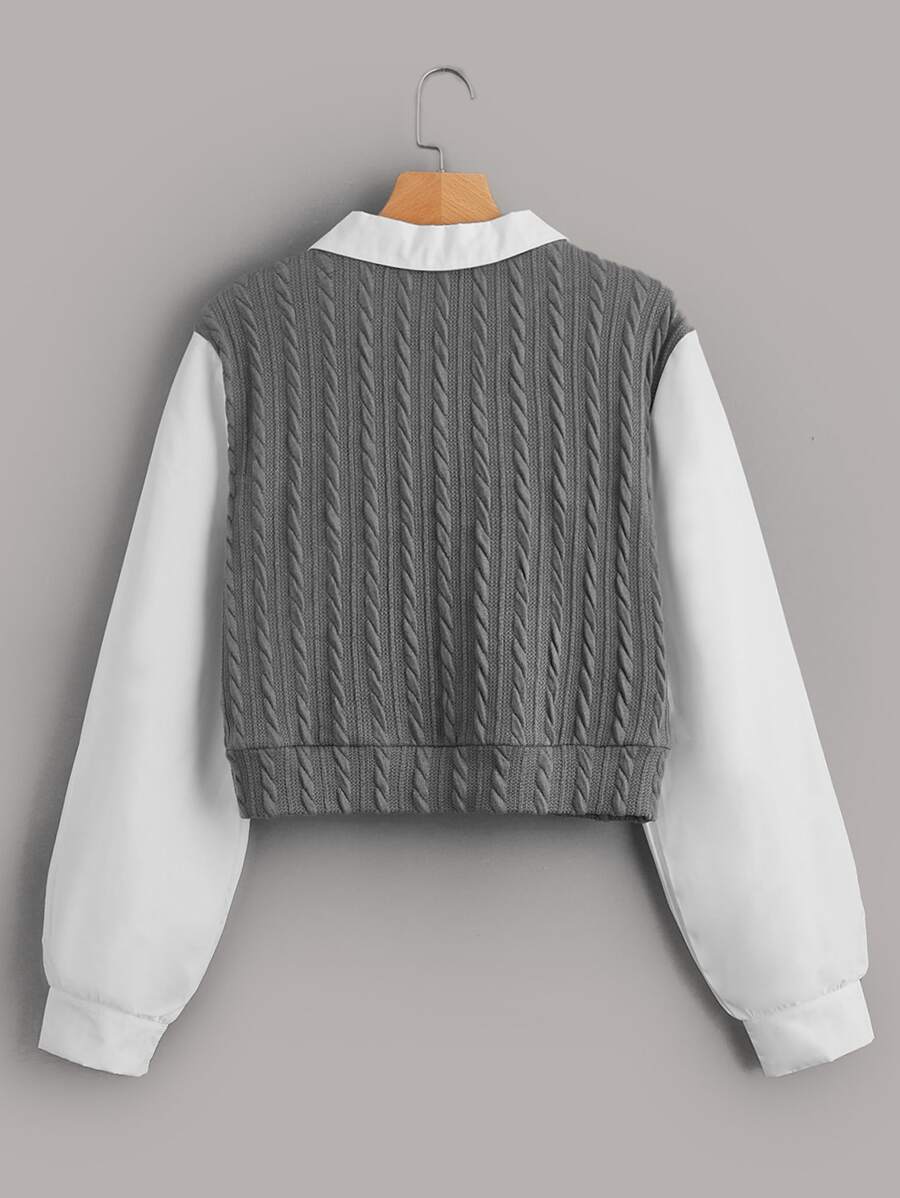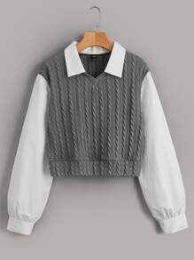 مقاس كبير بلوزة 2 في 1 ألوان متجانسة أكمام فانوس منسوج مضفور