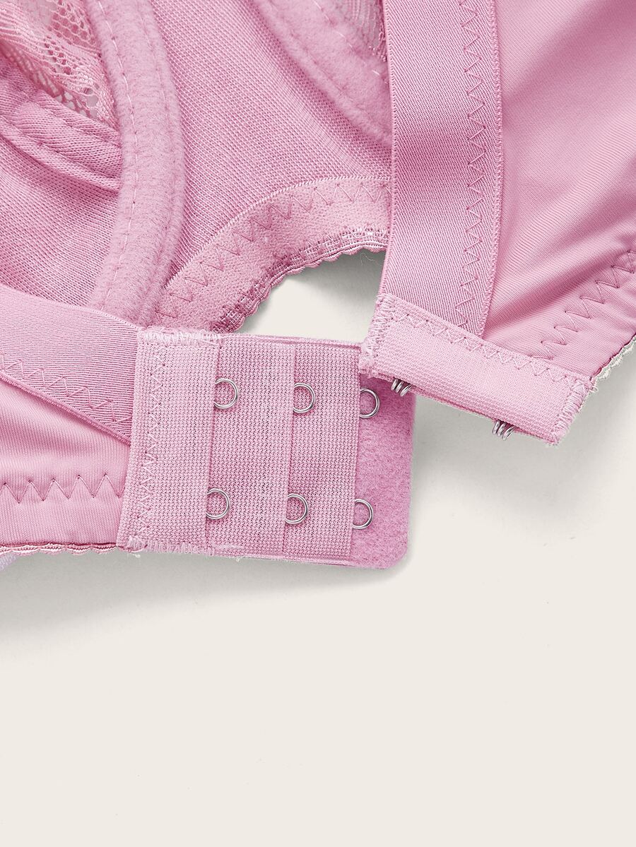 حمالة صدر دانتيل متباين اللون بتفاصيل قوس حلقة معدني مقاس كبير