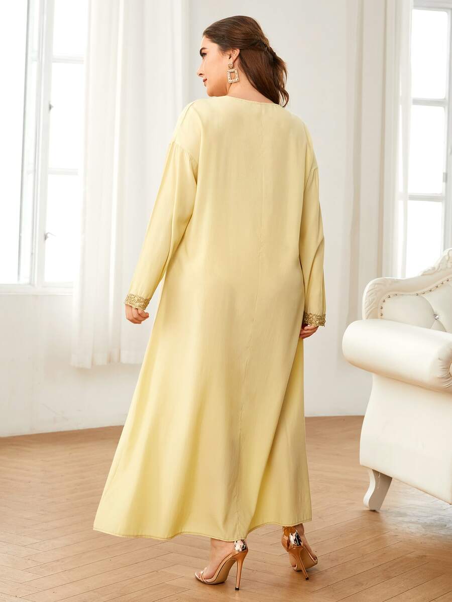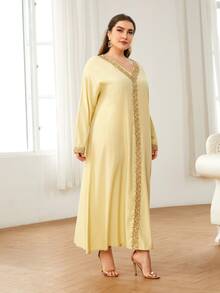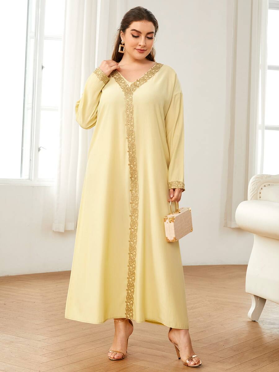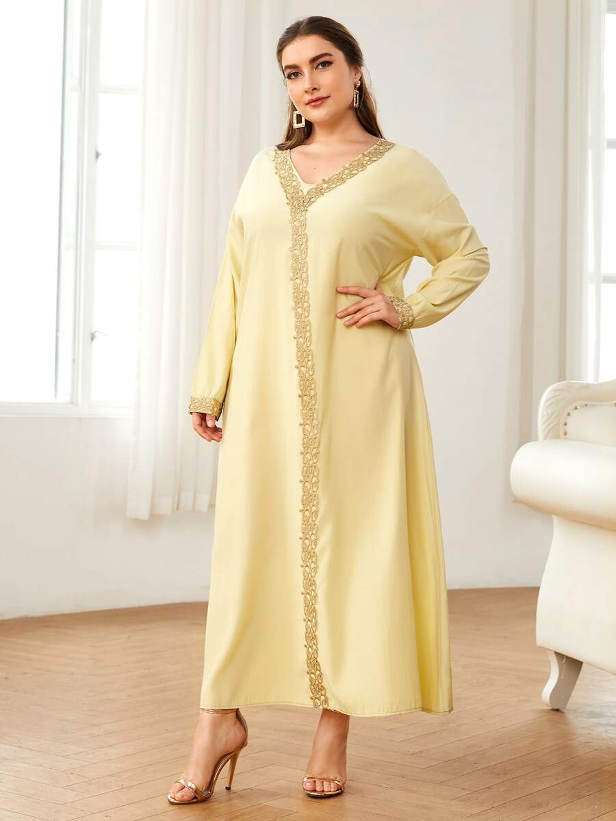 فستان تونيك بياقة V بدانتيل متباين مقاس كبير