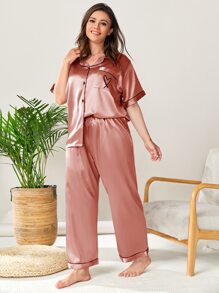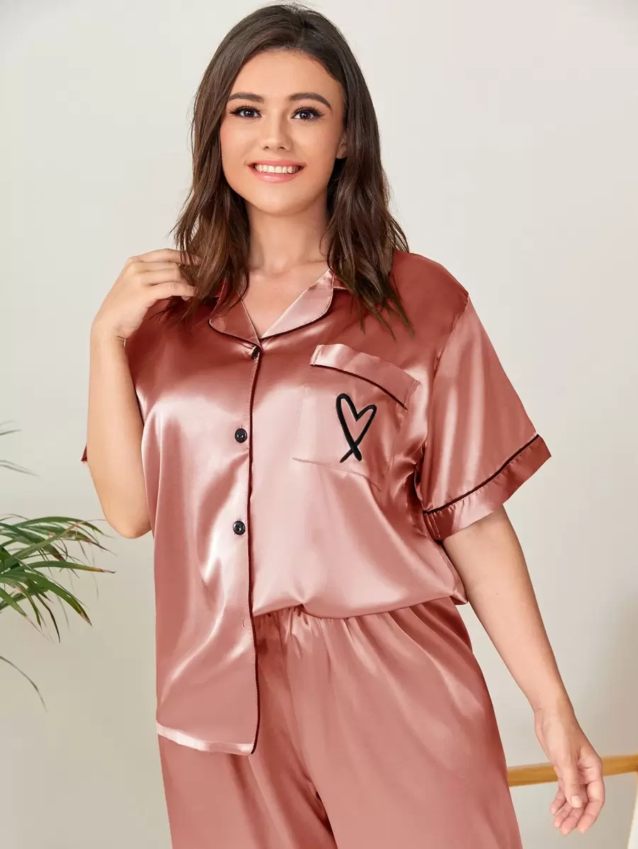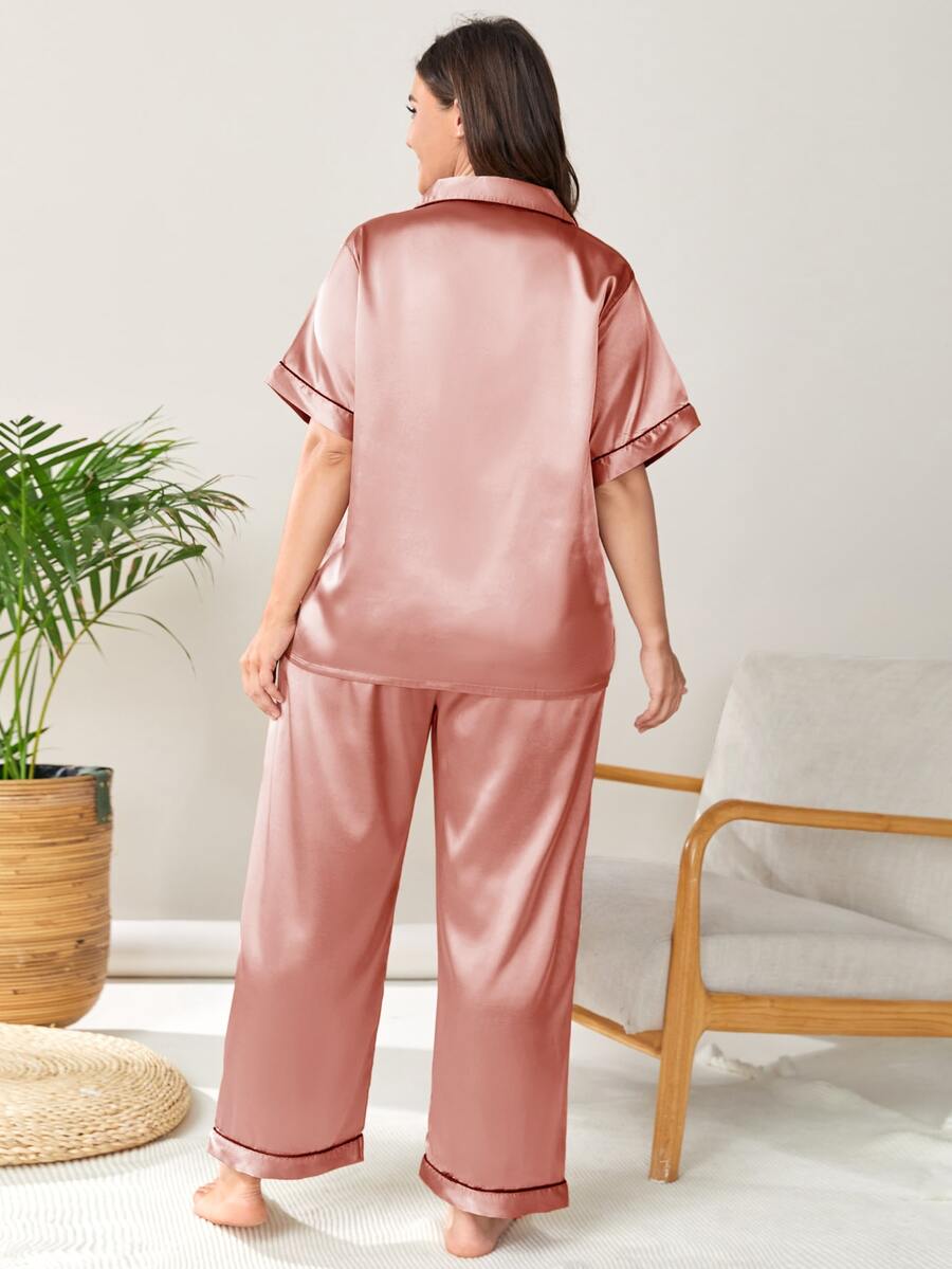 طقم بيجامة ساتان بشريط متباين مقاس كبير