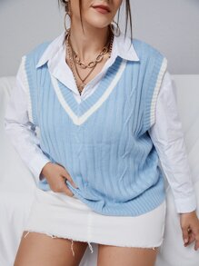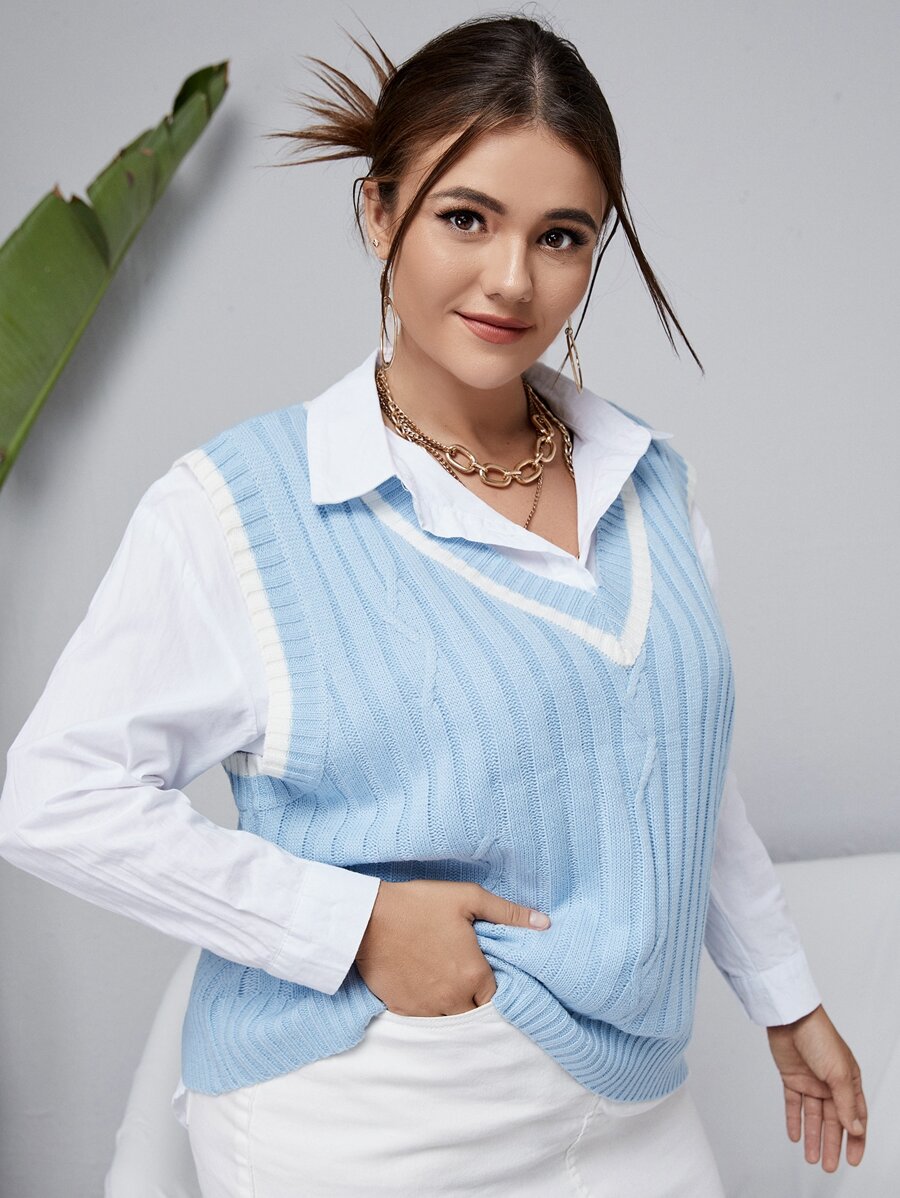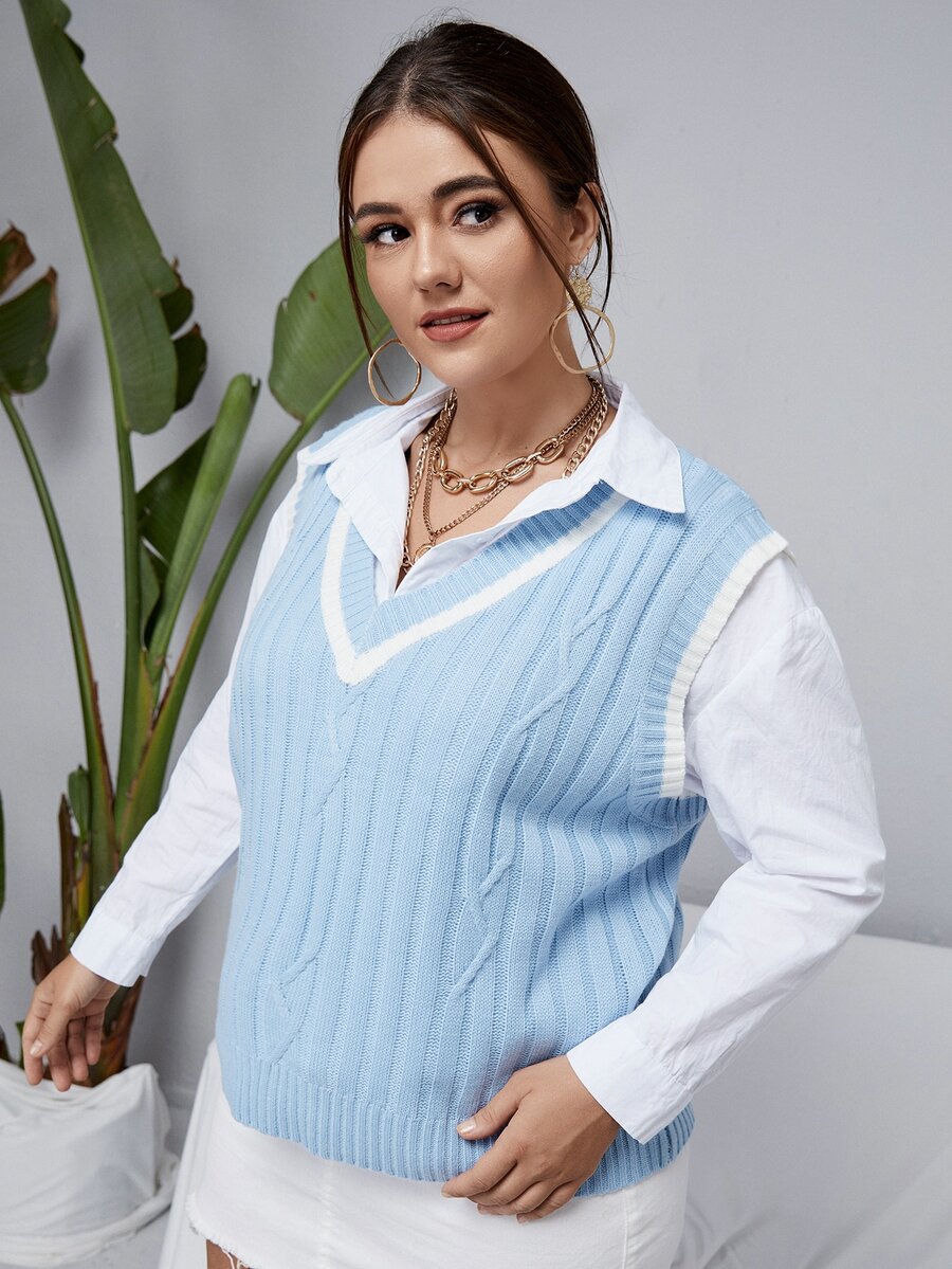 صديري محبوك مضلع مقلم متباين مقاس كبير بدون بلوزة