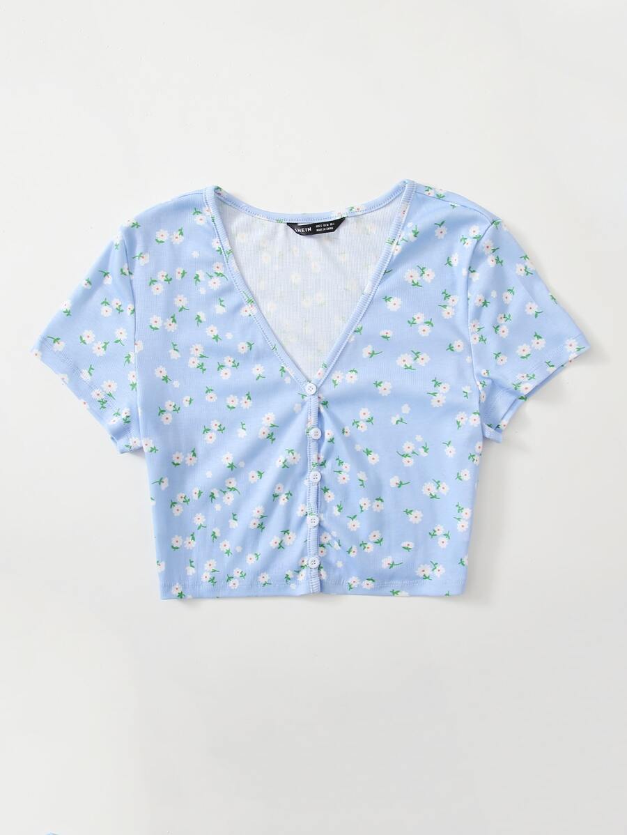 تي شيرت زهر ديزي أزرار علوية مقاس كبير Cottagecore