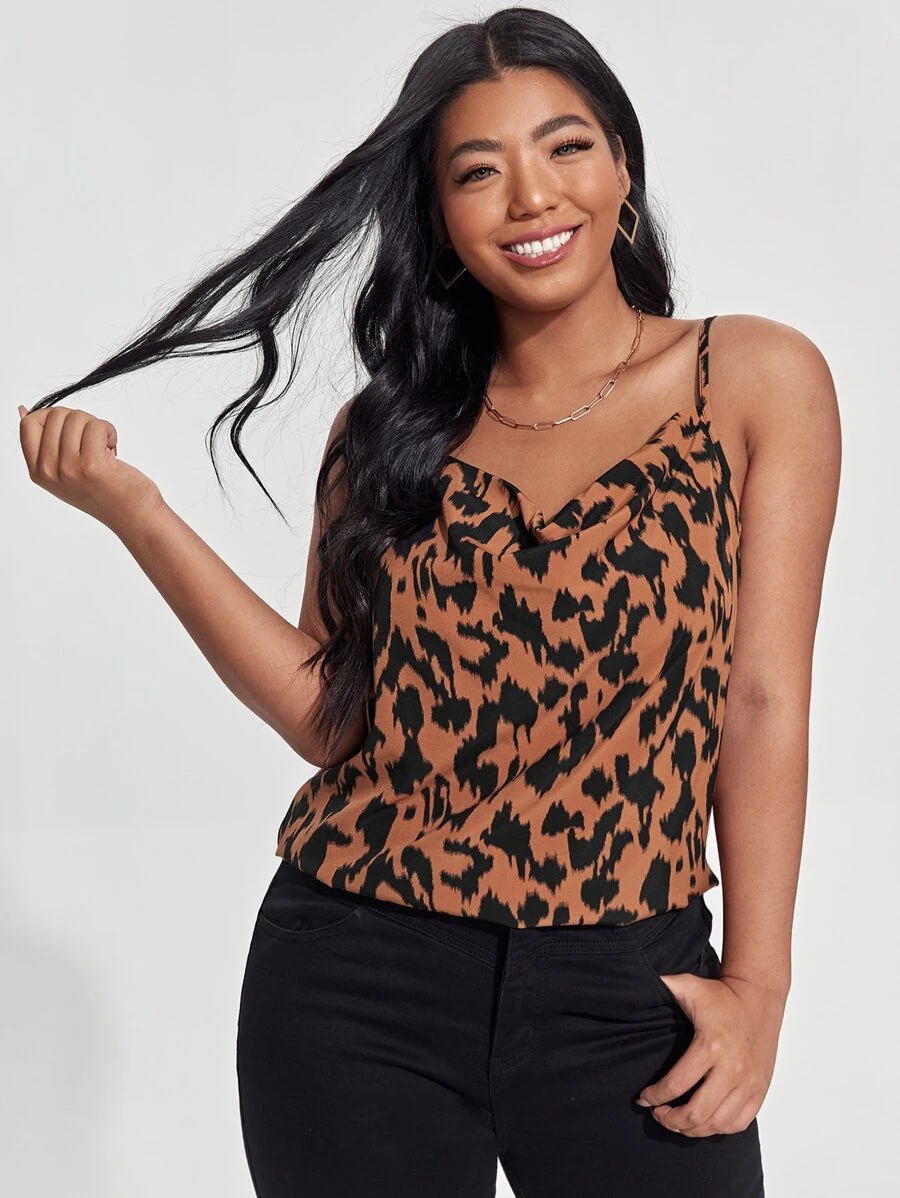 لباس علوي كامي مقاس كبير بطباعة شامل وبياقة دائري