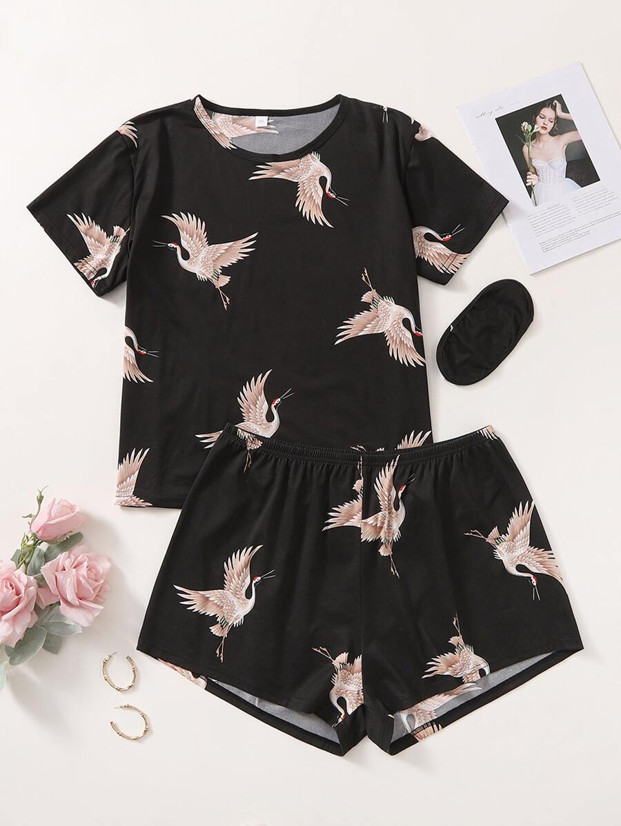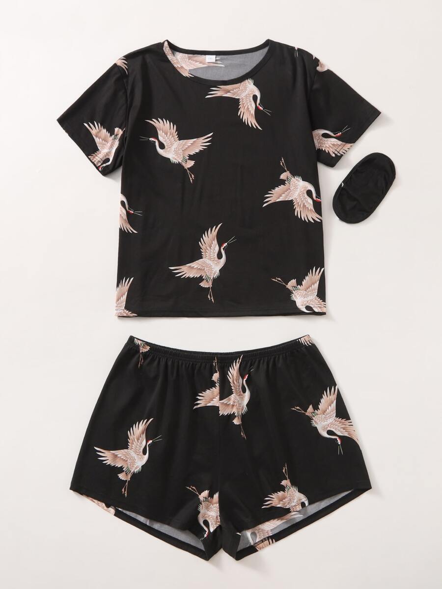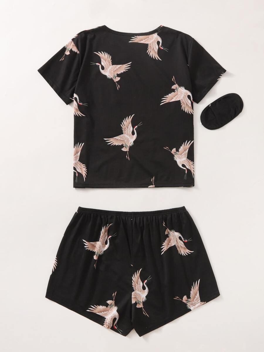 طقم بيجامة بطباعة رافعه مقاس كبير مع غطاء عين