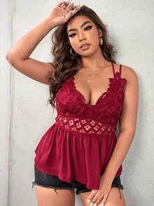 لباس علوي كامي بدانتيل مزخرف باربطة ظهر متقاطعة مقاس كبير