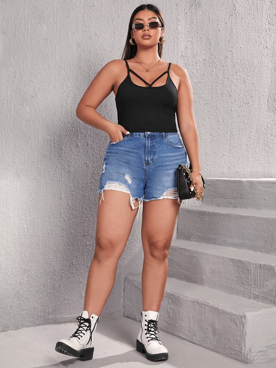 مقاس كبير لباس علوي كامي قص مجوف