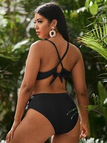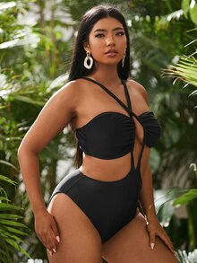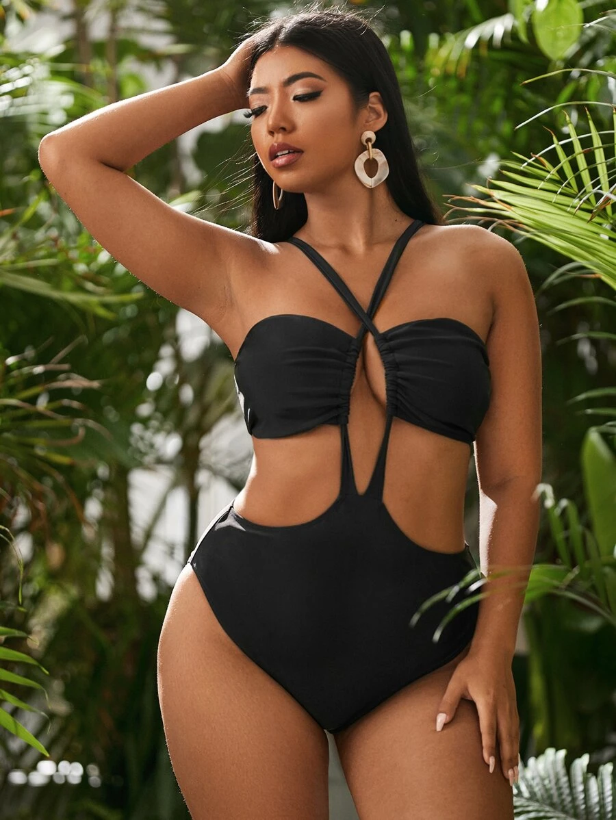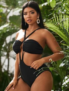 ملابس سباحة قطعة واحدة بربطة خلفية مقصوص مقاس كبير